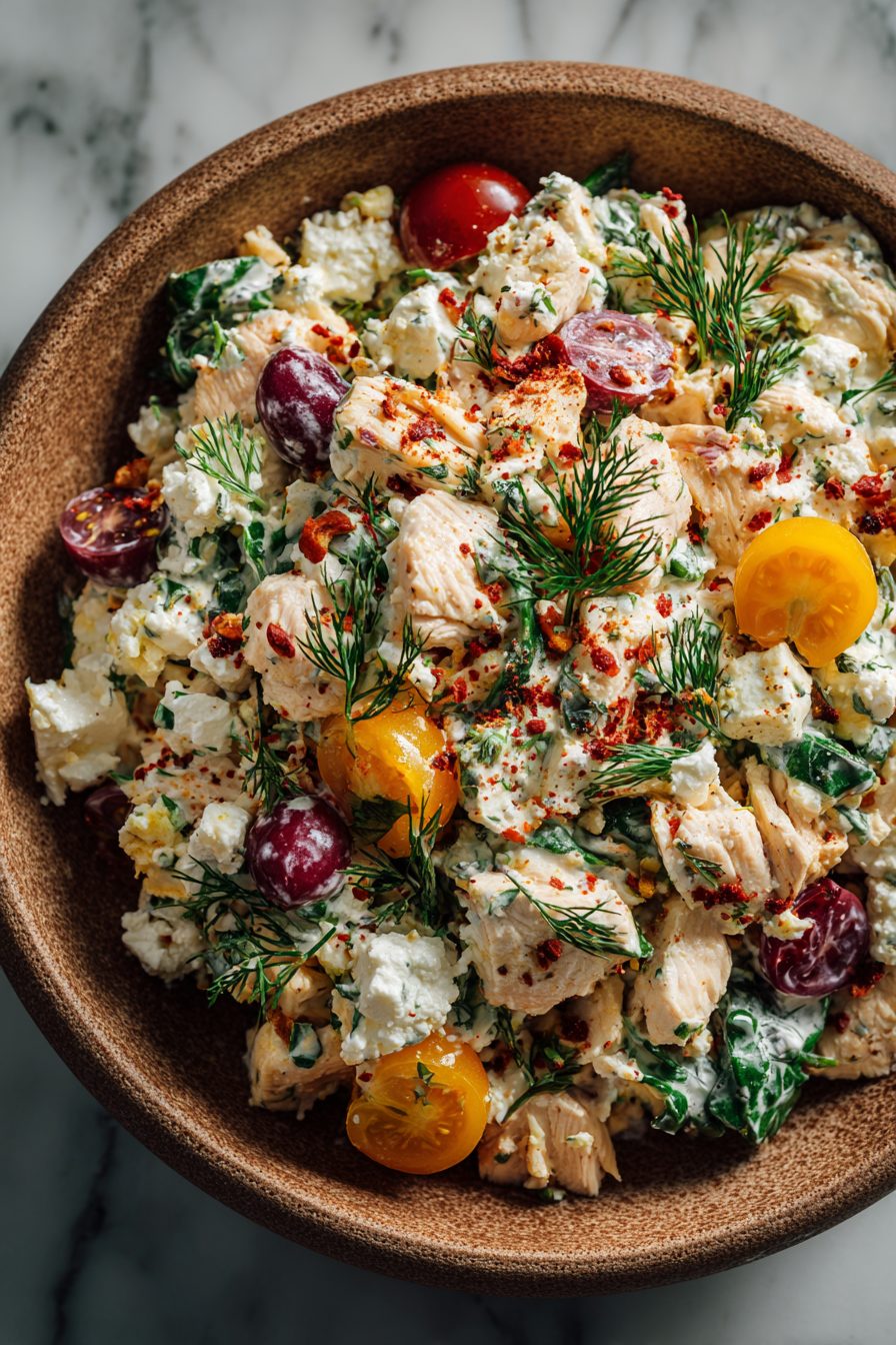 This is my favorite kind of “I didn’t plan dinner but I still want it to slap” situation: juicy chicken folded into crunchy veg, a tangy lemon-olive oil situation, and big salty crumbles of feta that make the whole thing feel like you did something special. It’s half Greek salad, half hearty chicken salad, and 100% the thing I pack for busy days because it holds up in the fridge like a champ and goes anywhere—pita, greens, crackers, straight off the spoon.