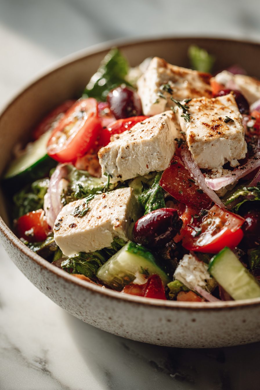 I learned the hard way that extra-crumbly feta means salt city. If your feta is super briny, give it a quick rinse and pat dry—yes, rinse your cheese, I said what I said. Red onion can be bossy, so I soak slices in cold water while I chop everything else. I’ve also thrown in leftover grilled corn once and felt like a genius. When I ran out of lemon, I used a splash of red wine vinegar and a drizzle of honey, and honestly? Not mad about it. Oh—and if you think you hate olives, try chopping them teeny-tiny. They become little flavor confetti, not big “hello, I’m an olive” moments.