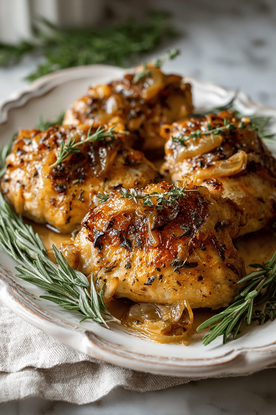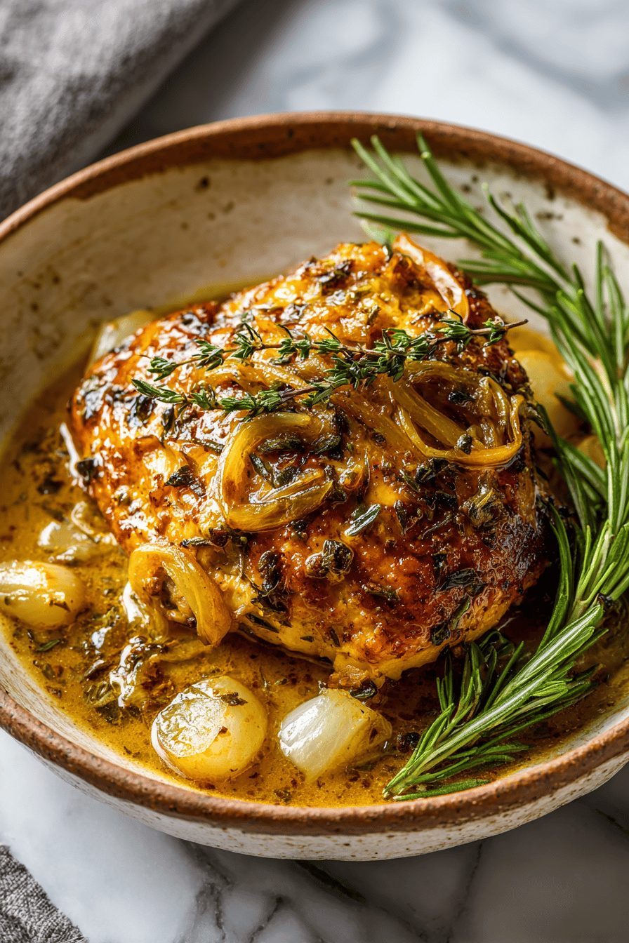This chicken dish is basically caramelized-onion comfort food shoved onto tender chicken and baked until everything gets cozy and a little browned on top. It tastes like the best parts of French onion soup — sweet, savory onions and melty cheese — without needing a fancy broth simmer for hours. Try it if you want something cozy, crowd-pleasing, and a little dramatic without actually trying that hard.
