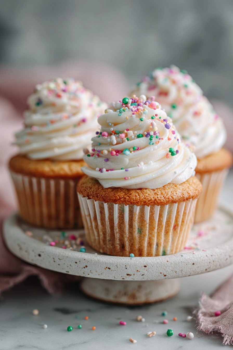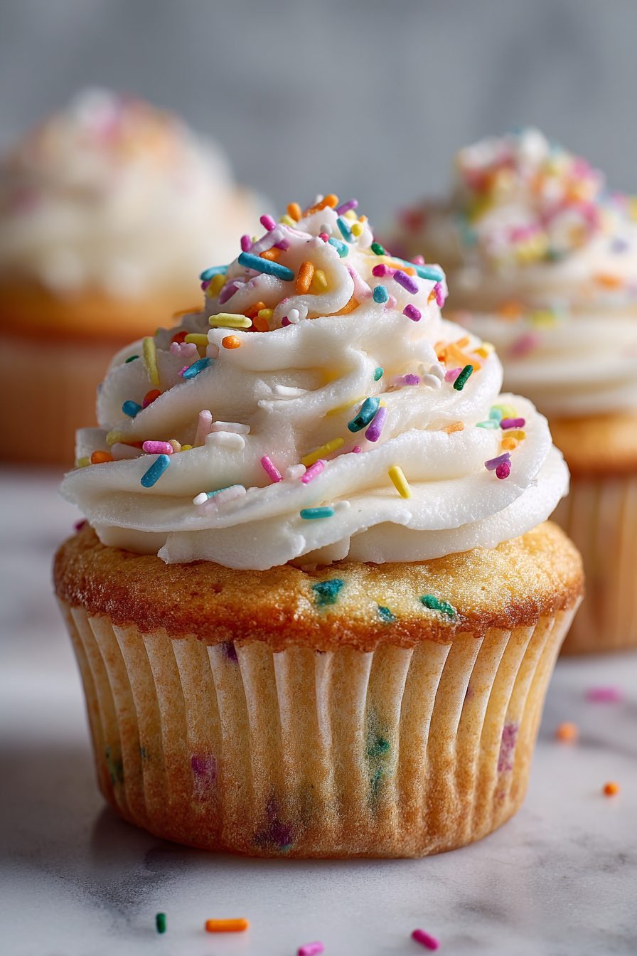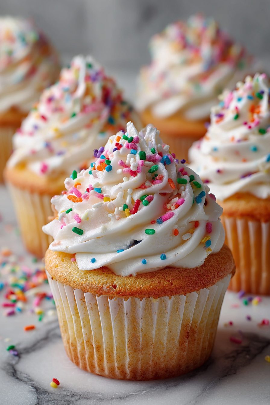 My husband calls them “the happiness muffins” and will stroll into the kitchen at 10pm poking the domes like a worried inspector until I let him swipe a half-frosted one. The kids? They demand a strict sprinkle-to-frosting ratio and have strong opinions about whether the sprinkles should be baked in or only on top. This recipe became a staple after a chaotic birthday where I forgot to buy a cake — these cupcakes saved the day, the party, and our dignity. They’re also my go-to when I want to eat cake for breakfast and not feel too guilty.