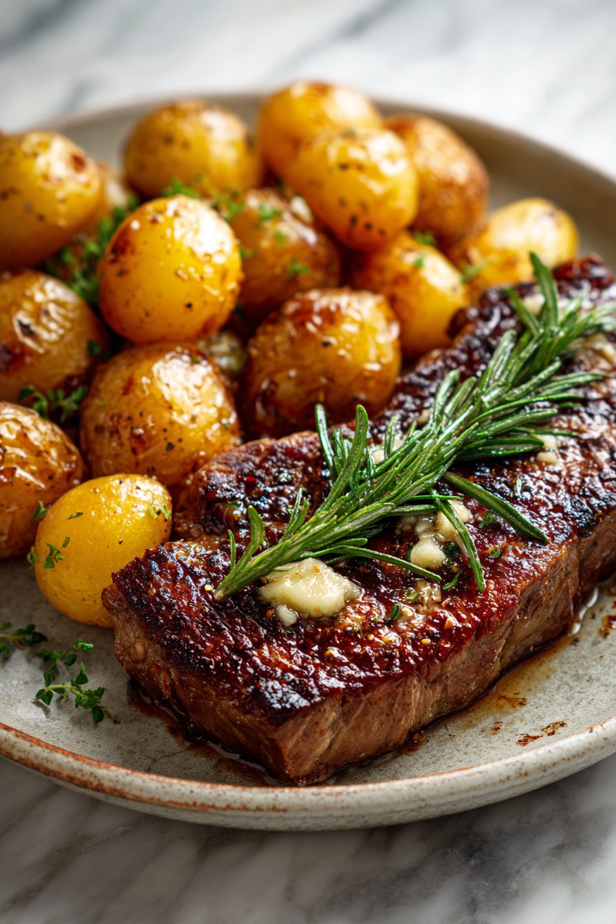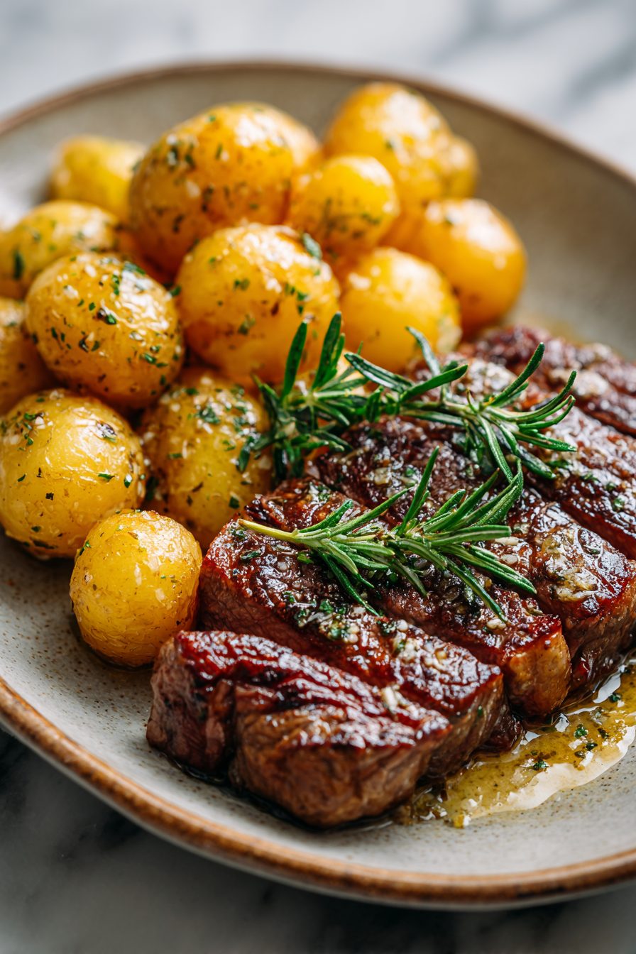This recipe is the kind of dinner that makes the whole house smell like something holy — browned butter, garlic, sizzling steak, and potatoes with edges so crisp they sing. It’s simple-ish, unfussy, and somehow feels celebratory even on a Wednesday. Perfect for when you want big flavors without a million steps.