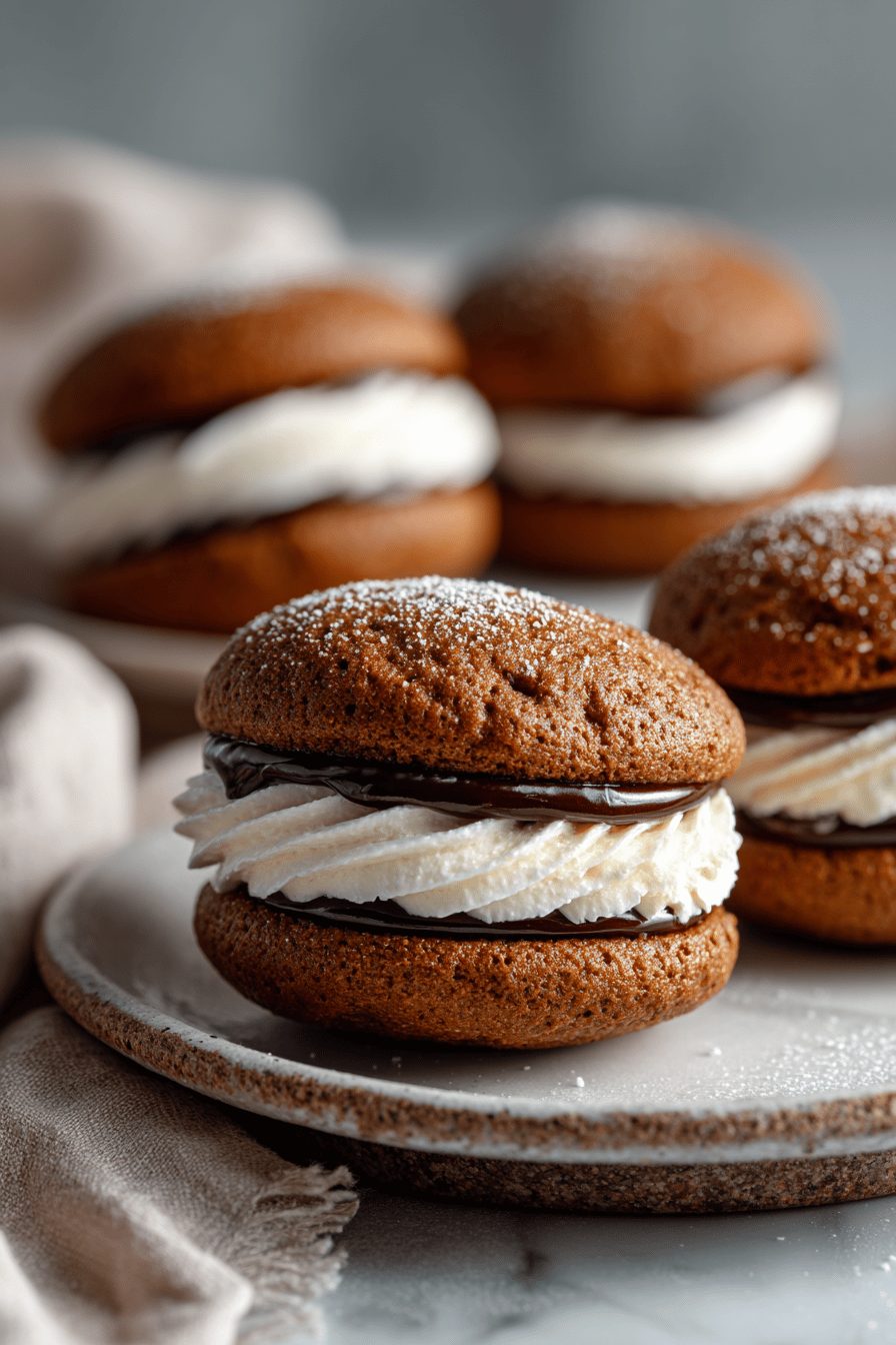 Store assembled whoopie pies in an airtight container at room temperature for 2 days; refrigerate up to 5 days. If you prefer them cold, go ahead — they’re still delightful like a chilled dessert sandwich. For breakfast the next morning, microwave one for 8–10 seconds if you want that just-baked feel.