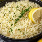 Fluffy rice infused with bright lemon juice, savory garlic, and fresh herbs, creating a refreshing and flavorful Mediterranean side dish!