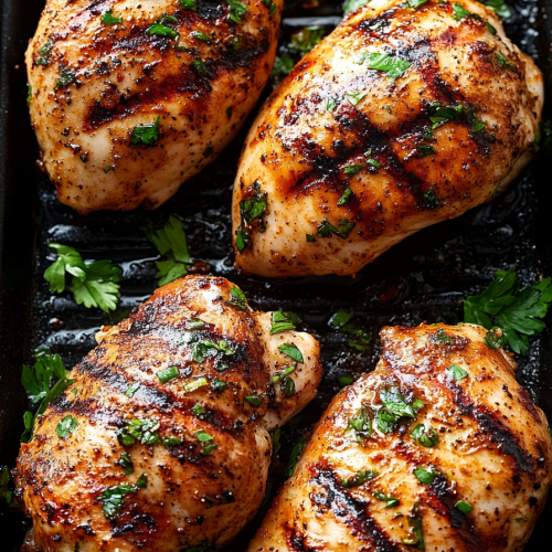 Place the chicken on the grill and cook for about 5–7 minutes on each side. Use a meat thermometer to ensure it reaches an internal temperature of 165°F.