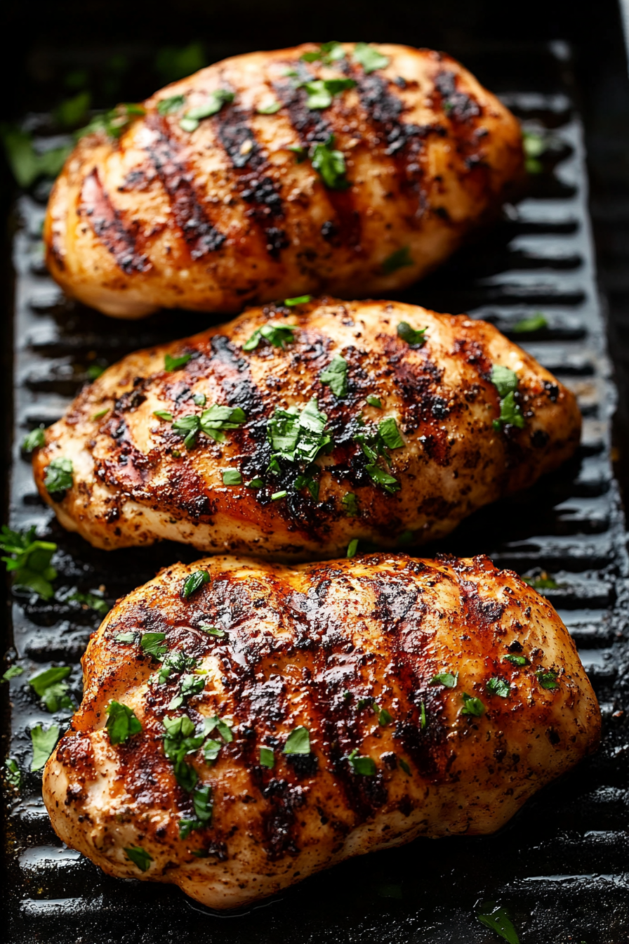 Place the chicken on the grill and cook for about 5–7 minutes on each side. Use a meat thermometer to ensure it reaches an internal temperature of 165°F.
