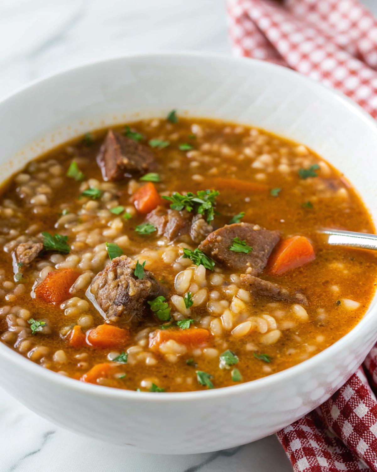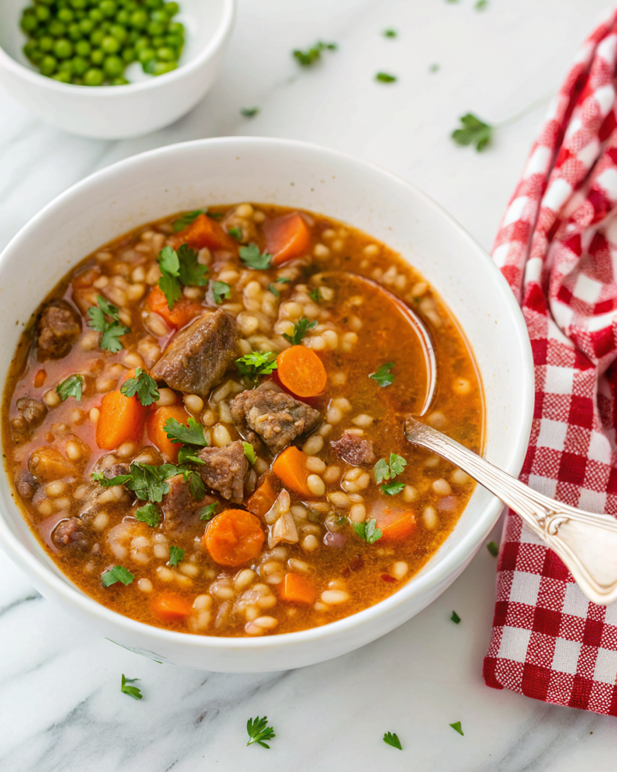 – It’s hearty without being heavy—beef and barley give you chew and comfort, but the broth keeps it light enough for leftovers.