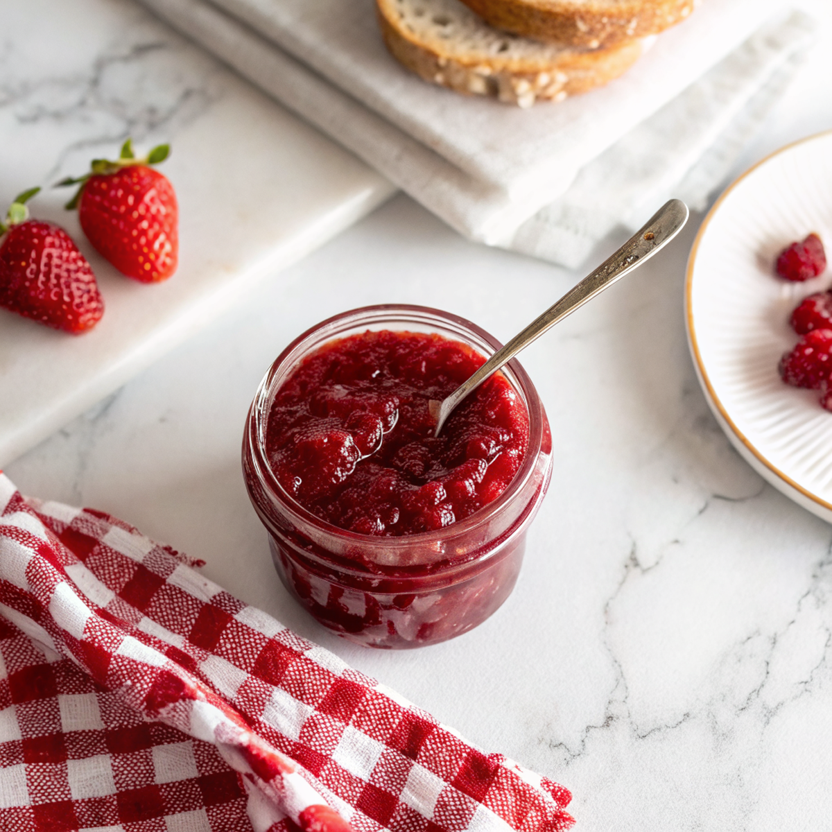 Swap some strawberries for rhubarb for a tangy lift, or add a splash of balsamic for depth. Honey can replace part of the sugar, but it will change the set and flavor, so taste as you go. Vanilla bean feels decadent; black pepper or black peppercorns (crushed) make a quirky grown-up jam. If you’re out of fresh fruit, frozen berries are an honest, reliable substitute.