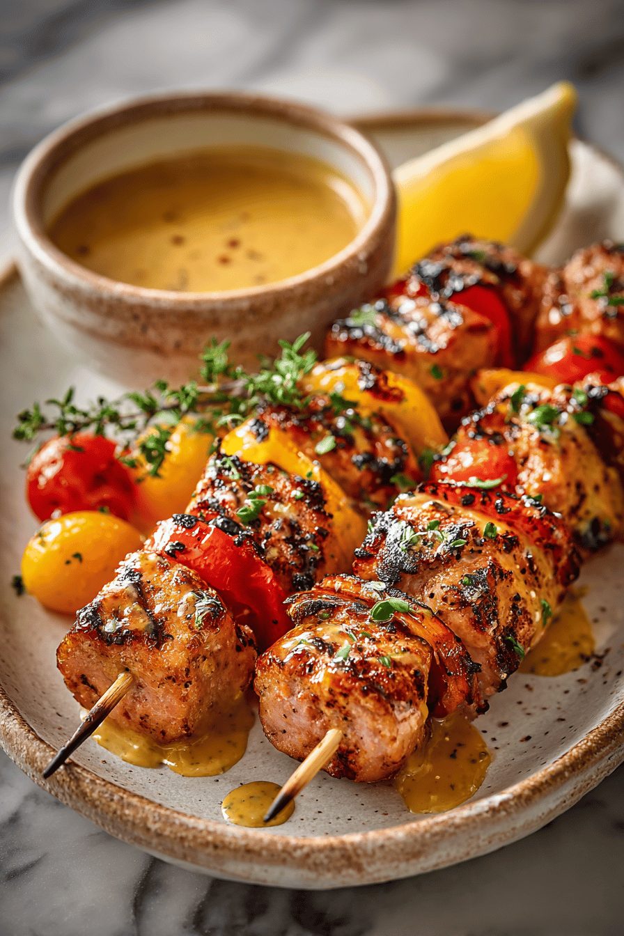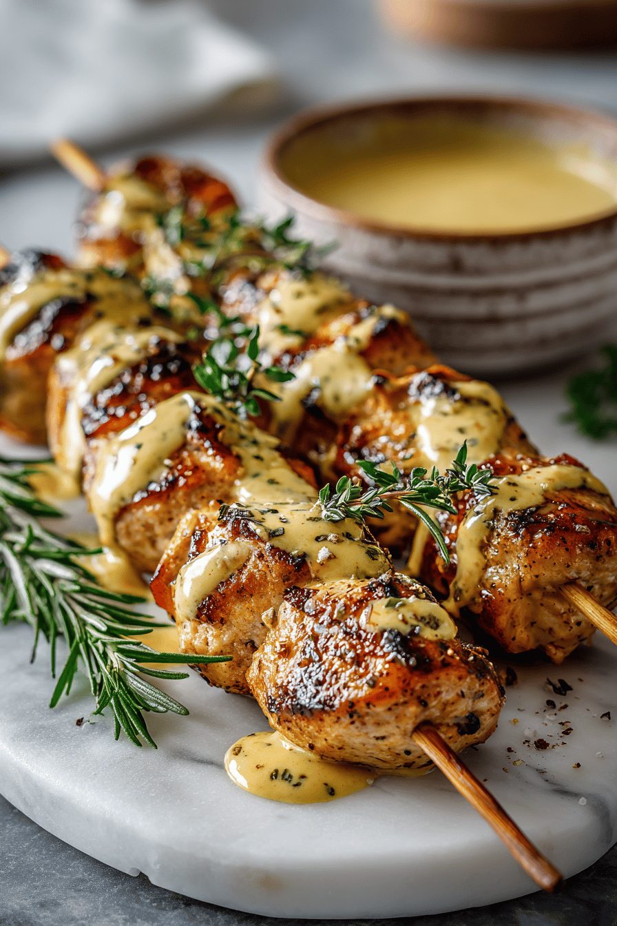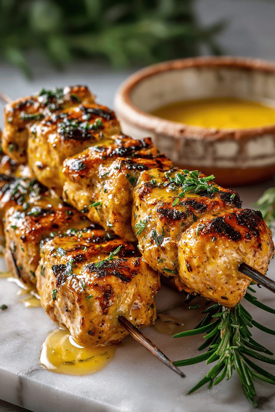 Juicy grilled chicken skewers glazed with a tangy honey-Dijon marinade. Fast to prep and perfect for weeknights or cookouts.
