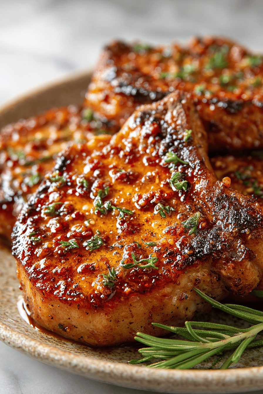 - Sear chops 2–3 minutes per side until well browned. Transfer to a plate.