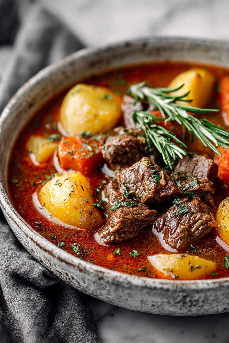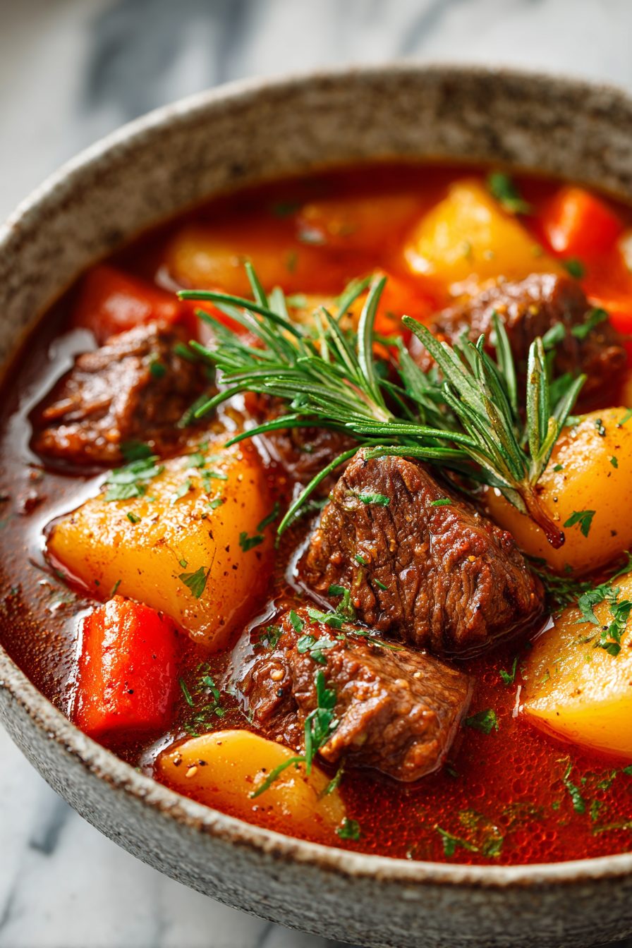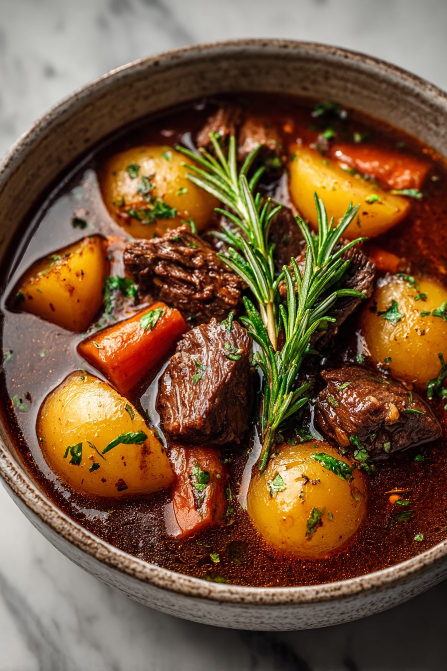 I have a messy relationship with brown bits. Sometimes I forget to scrape the pot before adding liquid and the Instant Pot pings like it’s judging me; other times I remember, and the resulting fond makes the stew sing. I once tried searing the beef in butter instead of oil and burned it slightly — it added a smoky note I didn’t expect and the family loved it, so now it’s my accidental secret weapon. Also: if your potatoes are big, cut them into smaller bite-size chunks or you’ll be slow-roasting them in the broth forever.
