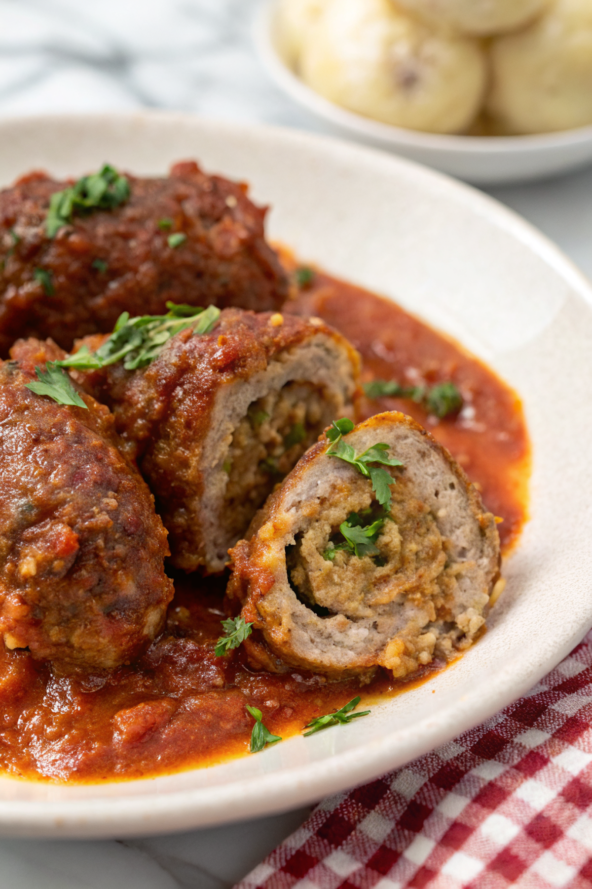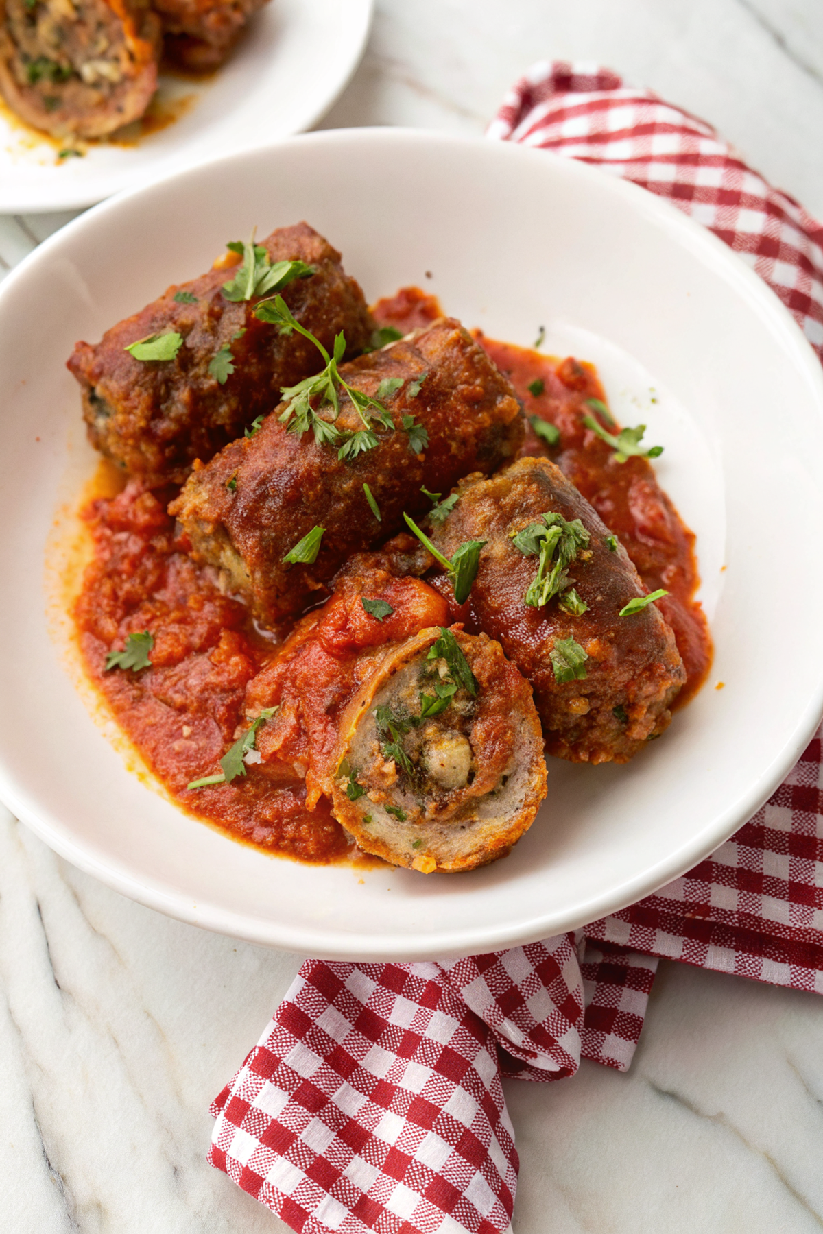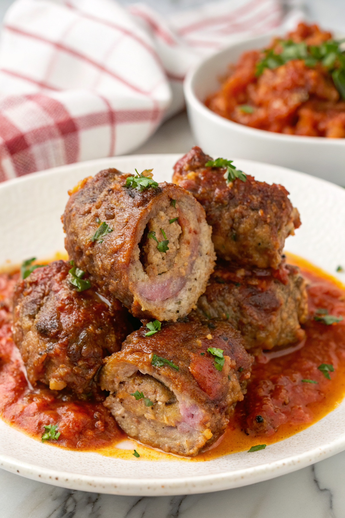 This rolled-up, garlicky Italian beef braciole is the kind of dinner that smells like nostalgia and makes the whole house slow down. Thin slices of beef get smeared with a salty, herby filling, rolled tight, seared until the edges sing, then simmered low and slow in a tomato sauce until everything softens into something wildly comforting and ridiculous. It’s special because it’s both fancy-ish (rolls! ties! drama!) and totally doable on a weeknight if you plan a little.