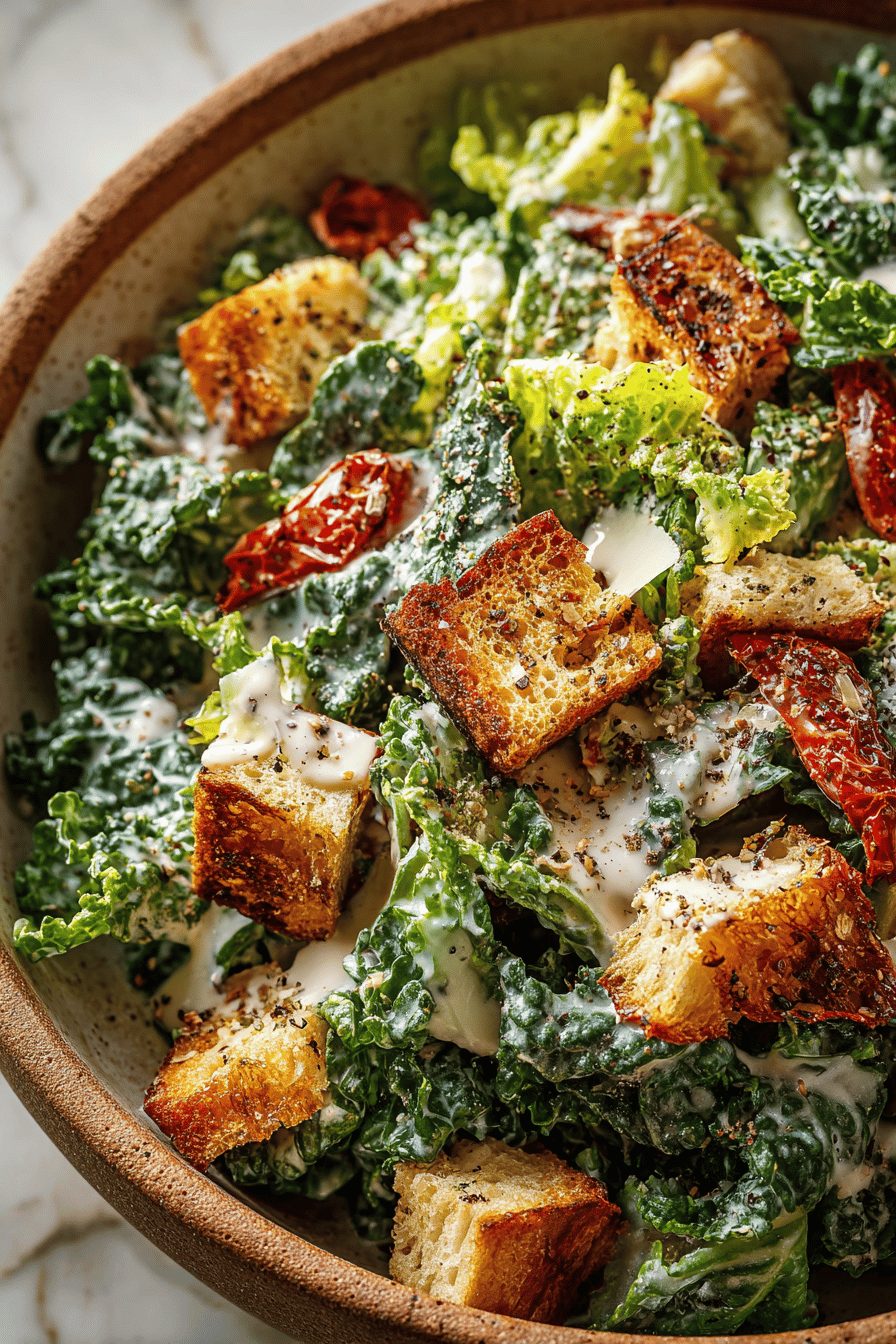 I didn’t think I’d ever be the person who raved about a salad, but here we are — this is my kale Caesar and it’s a leafy, punchy, slightly nutty love letter to anyone who thinks salads are boring. Think crisp, massaged kale, a garlicky, tangy Caesar dressing that isn’t shy, crunchy croutons, and a hit of cheesy umami that somehow makes dinner feel fancy without trying. Make it for weekday dinners, potlucks, or when you want to trick the kids into eating something green — it works.
