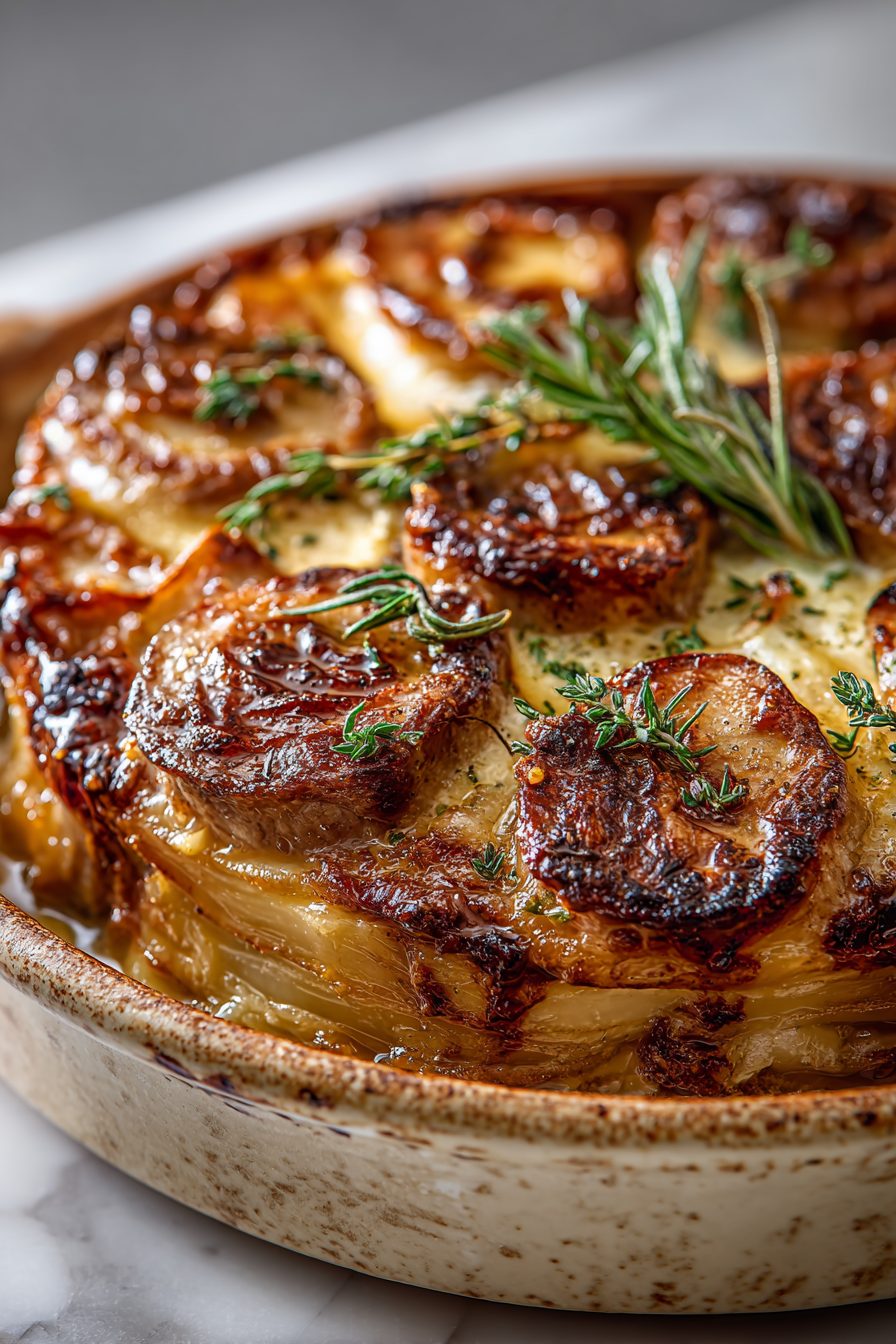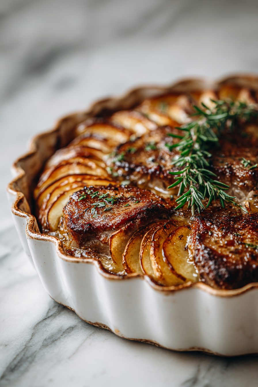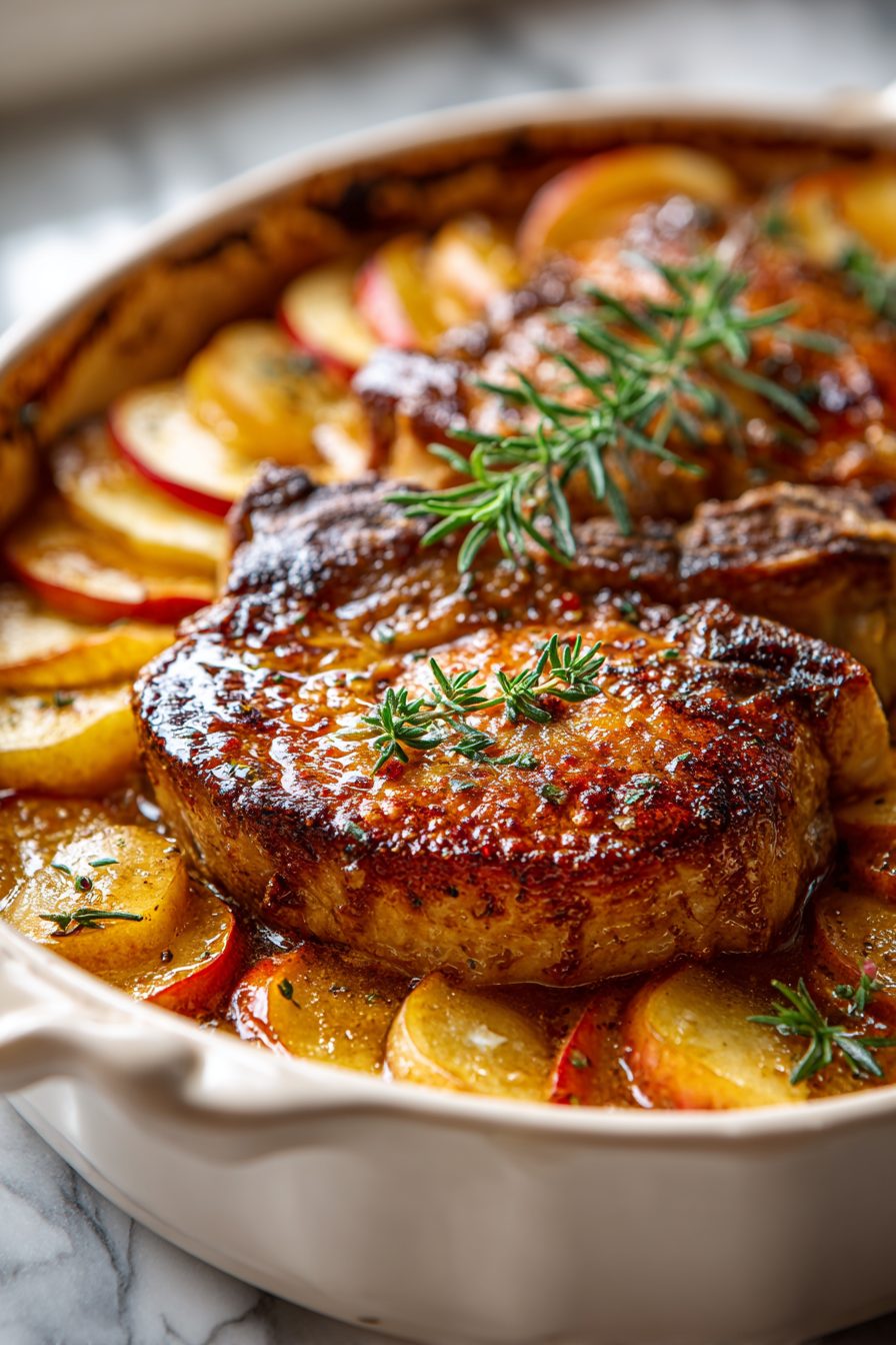 This is the kind of cozy, sweet-savory dinner that makes the whole house smell like you actually planned something. Thinly layered apples and onions tuck under juicy pork chops, everything kissed with a little Dijon, cider, and herbs, and baked until it melts together into this autumn-y blanket of flavor. It’s simple, not fussy, and feels like Sunday dinner even on a Tuesday when you’re still in your work socks.