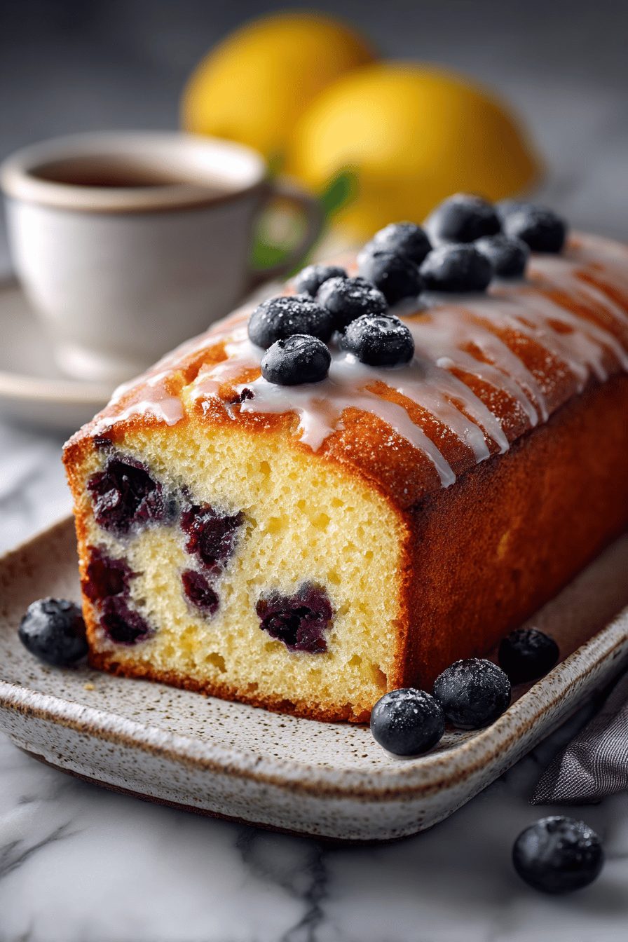 Warm, tender crumb with a bright lemon tang that balances the sweet glaze—blueberries are juicy and scatter lovely pops through each slice. I made it for a weekend coffee hour and it disappeared fast; simple to pull together and feels like a thoughtful, homey treat.