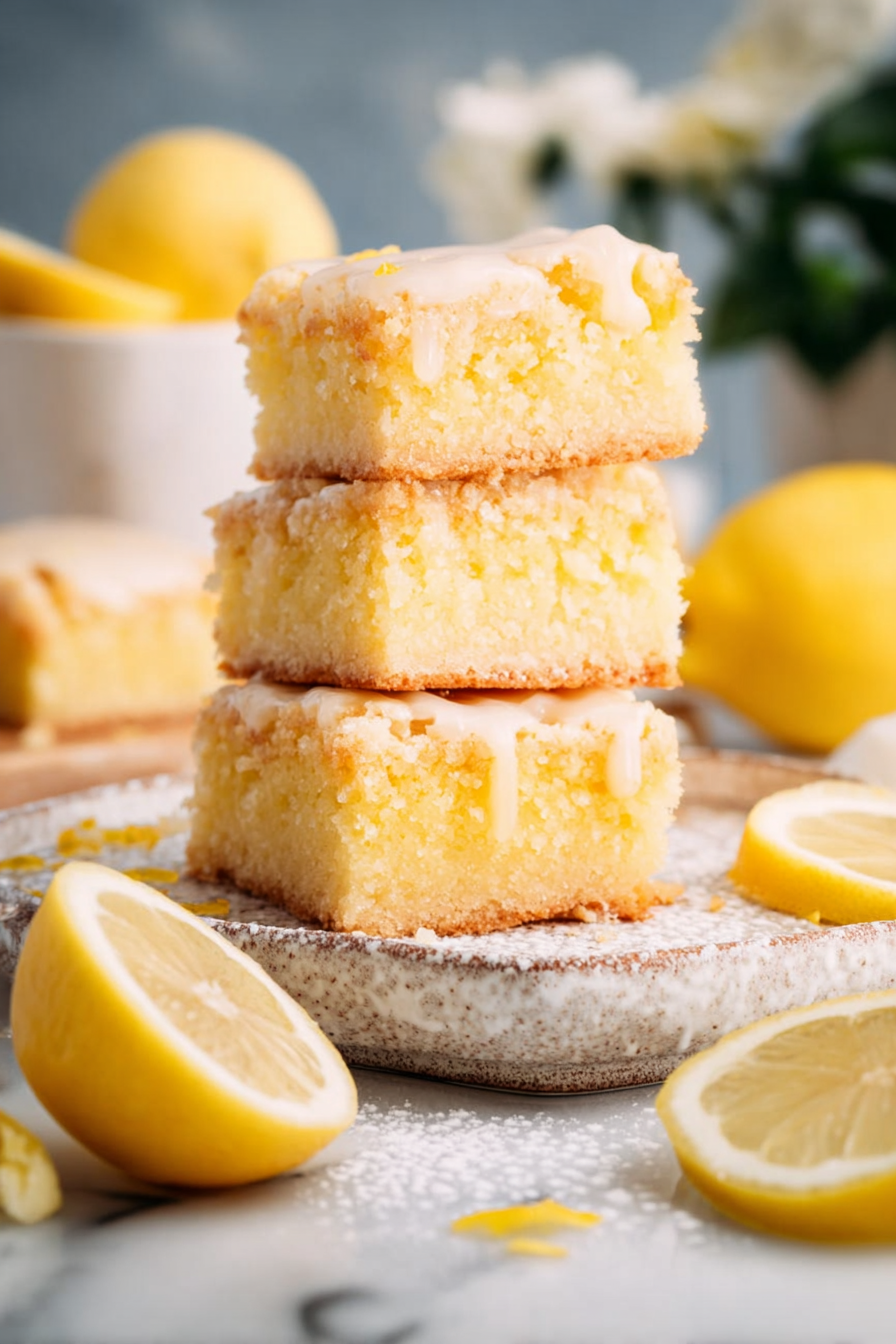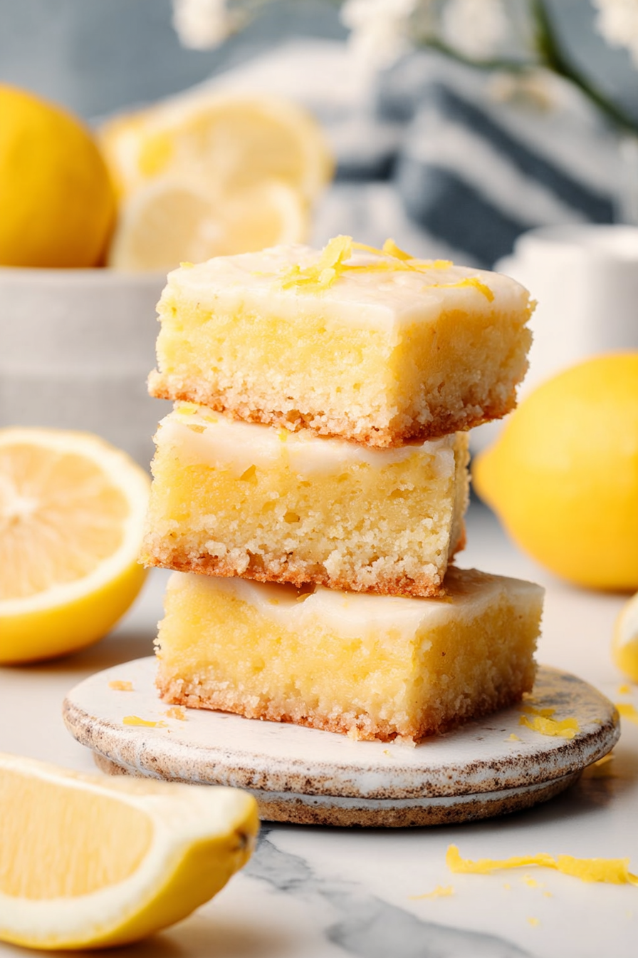 My husband calls these “the dangerous squares” because once he starts, there’s no stopping. The kids love them for lunchbox treats (don’t tell the school), and I make a batch on messy Sunday afternoons because the house smells like citrus and everything feels calmer. One time I forgot the glaze and improvised with powdered sugar plus extra lemon — it was messy but addictive, and now that mistake is a feature.