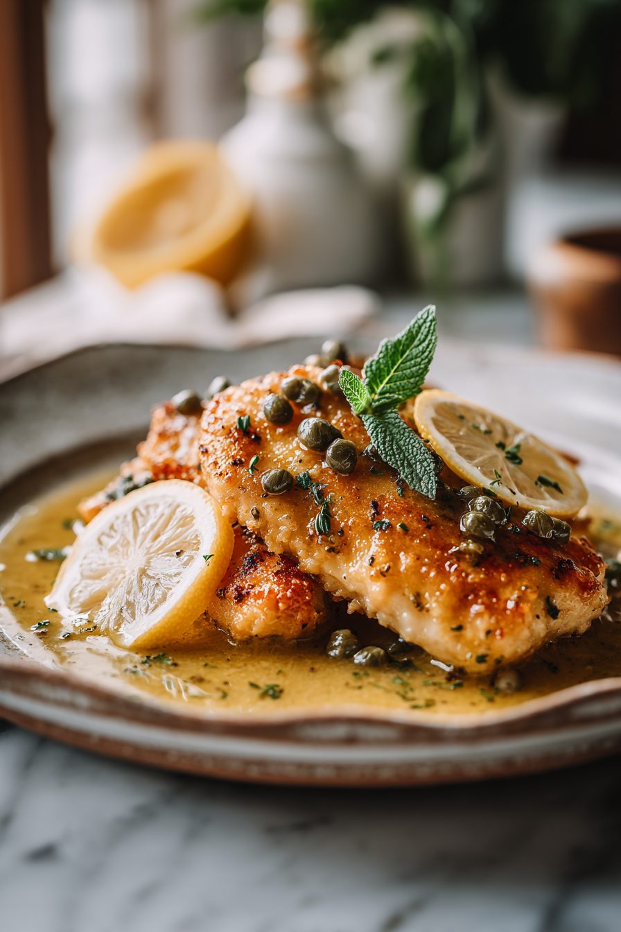 – Bright lemon + salty capers create a sauce that feels fancy without fuss.