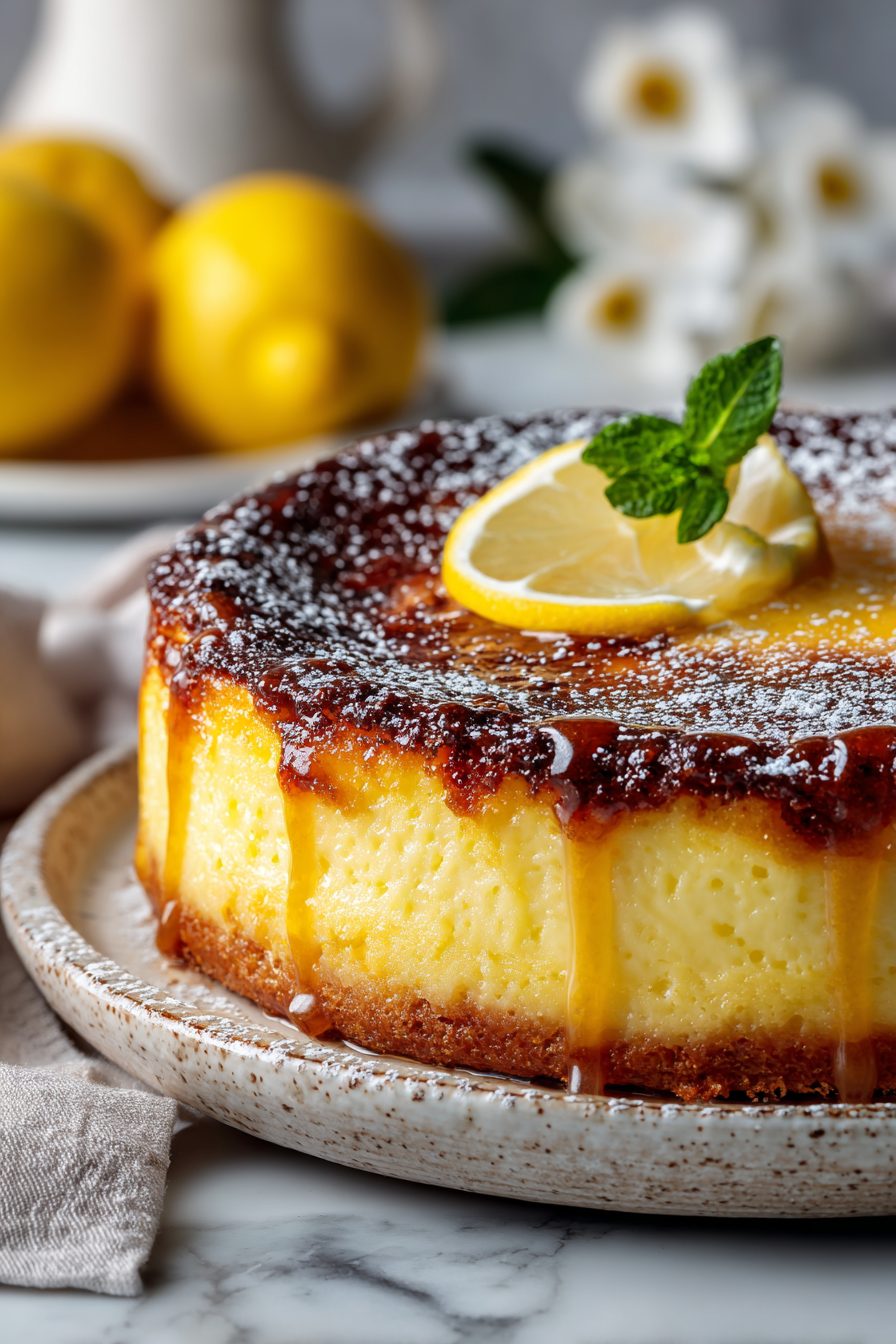 This cake is what happens when lemon curd and a custardy, cake-like sponge have a soft, messy baby and you forgive the mess because it tastes like sunshine. It’s a Lemon Custard Cake that sets into a silky lemon layer over a tender, slightly crumbly cake — not too sweet, bright as heck, and weirdly comforting at breakfast with coffee or as a show-off dessert after dinner.
