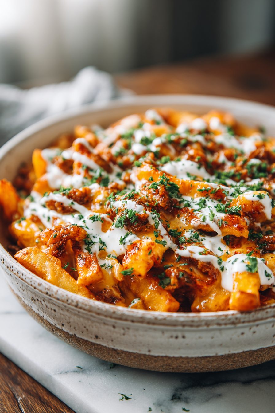 – Piling on sauce while fries are cold — they’ll go limp. Fix: reheat fries and toss lightly, then add toppings.