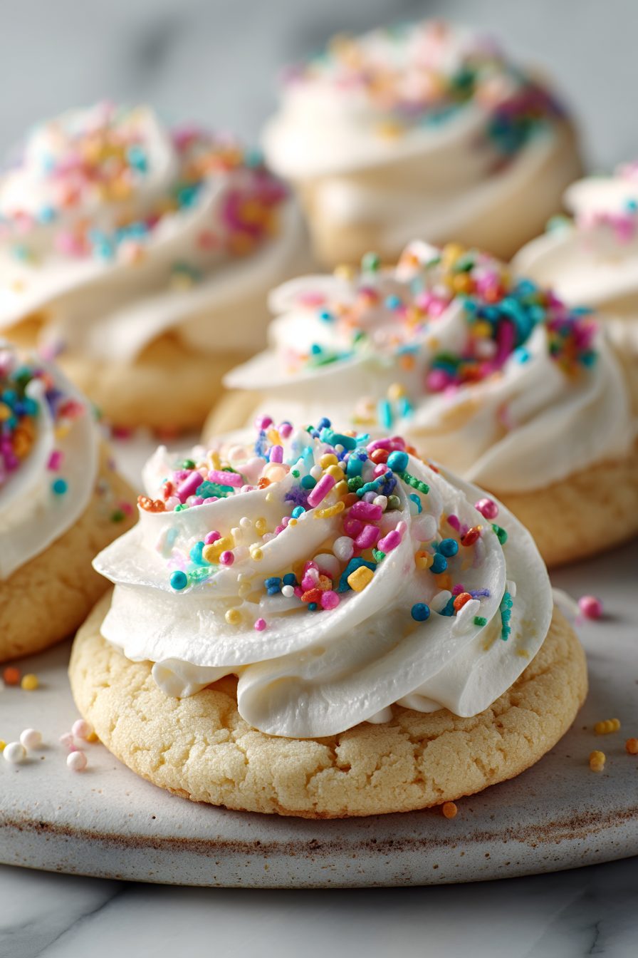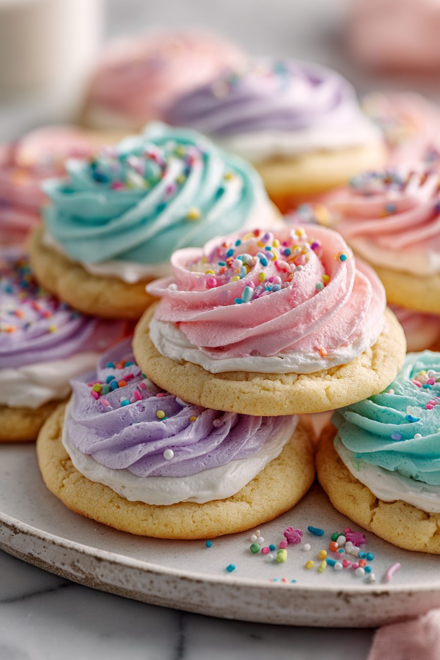 These cookies are charmingly forgiving. I once flung the mixer off the counter (don’t ask) and salvaged the dough by hand — still soft and amazing. I also swapped half the butter for browned butter once because I was feeling fancy; the family noticed (in a good way), but plain butter is perfectly nostalgic. Expect a little flour on your shirt and frosting on your cheek — that’s part of the experience.