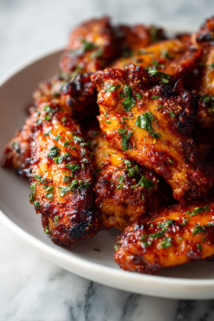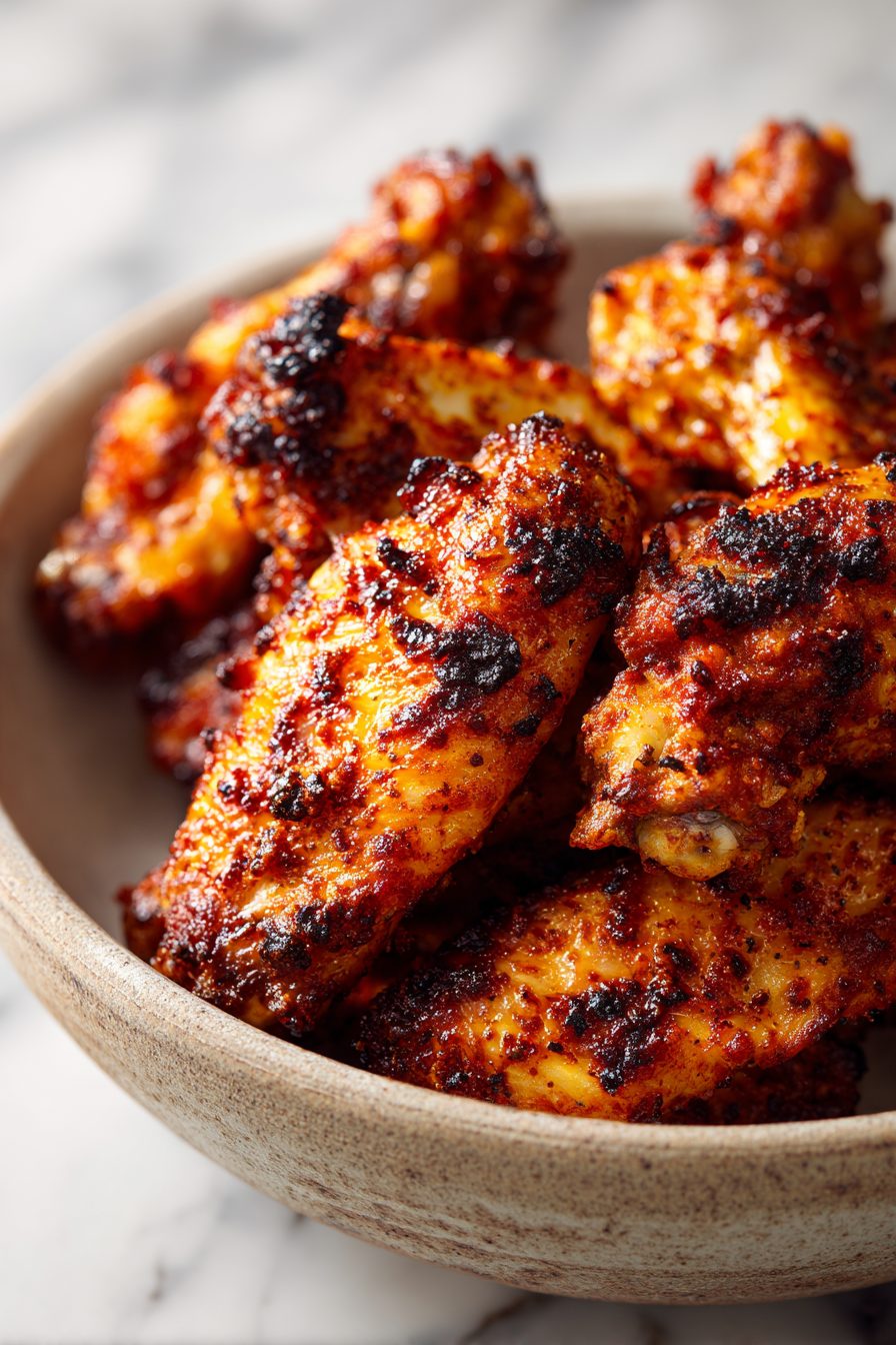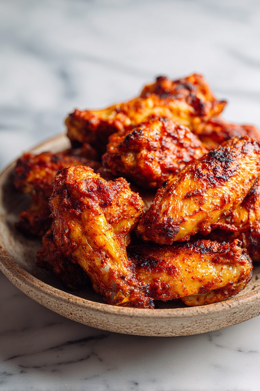 I go light-handed on the salt in the rub and finish with a sprinkle at the end—tastes brighter and you won’t get that too-salty bite on the thin parts. If you want extra crispy skin without frying, a whisper of baking powder mixed into the rub is magic. Learned that the hard way after one batch came out more “saucy sweater” than crispy. Also, patting wings dry isn’t optional. If your paper towels aren’t slightly tragic afterward, keep blotting.