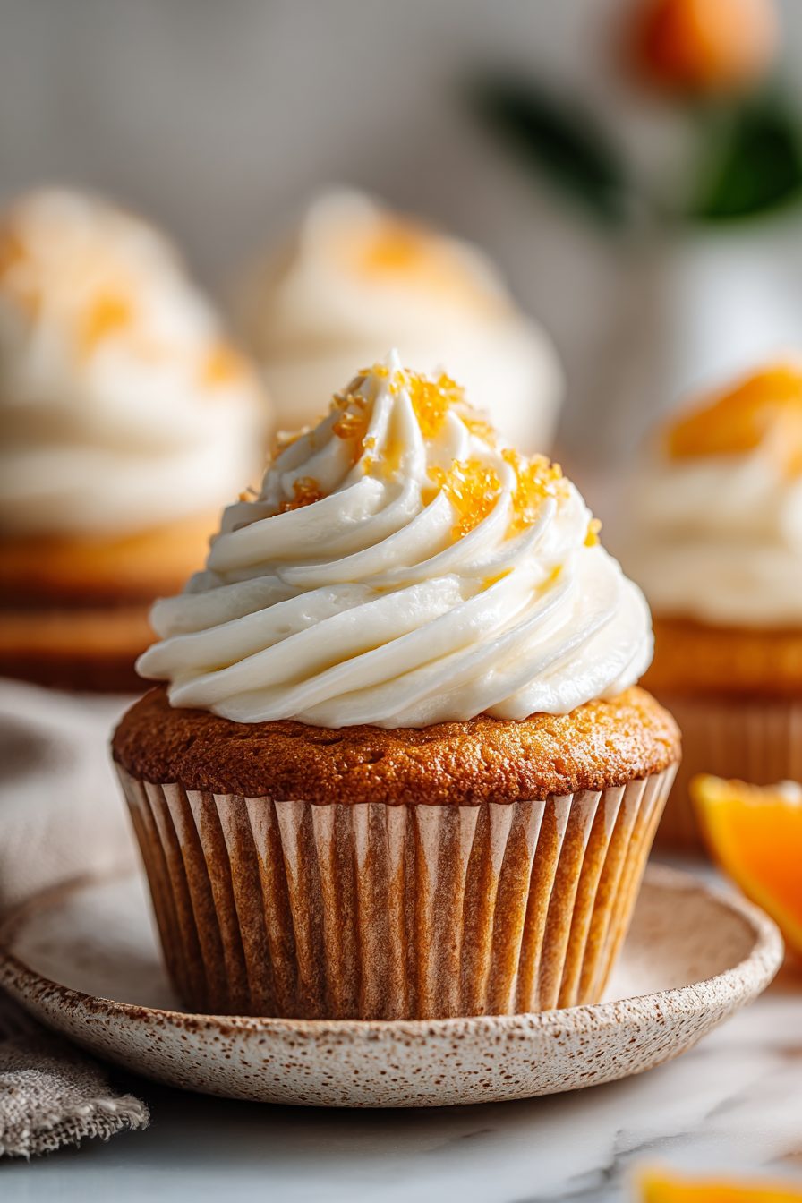 - Swirl frosting onto cooled cupcakes. Garnish with mandarin segments or extra zest.