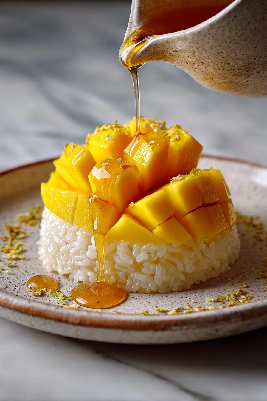 Leftovers live in the fridge, separate rice and mango if you can because the mango juice can make the rice soggy. Rice keeps a couple days; coconut sauce may thicken—rewarm gently and stir in water to loosen. Cold sticky rice? Totally fine for breakfast with a spoon and maybe a sprinkle of toasted sesame or a drizzle of condensed milk—no shame in day-two dessert breakfasts.