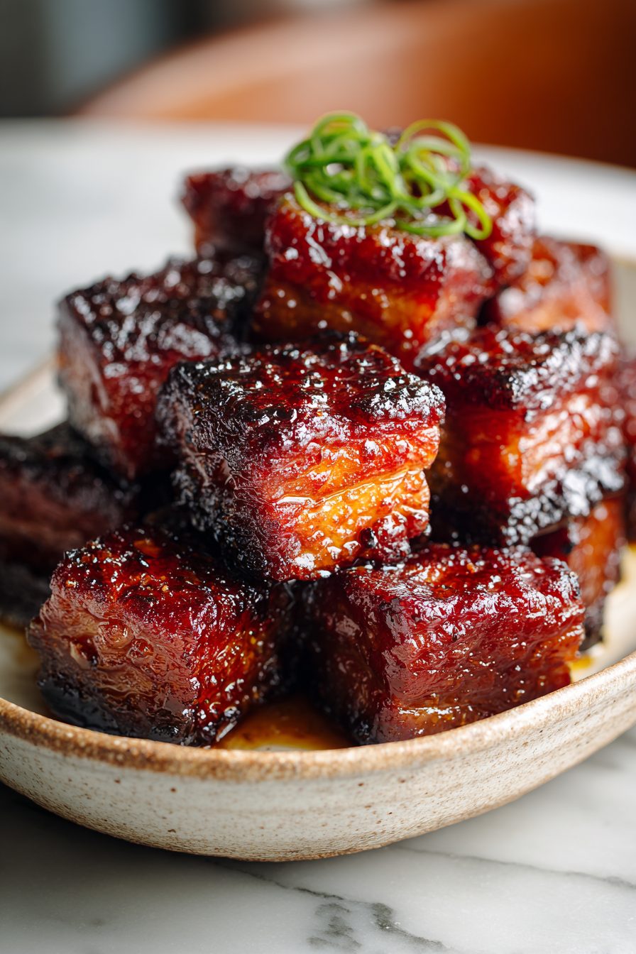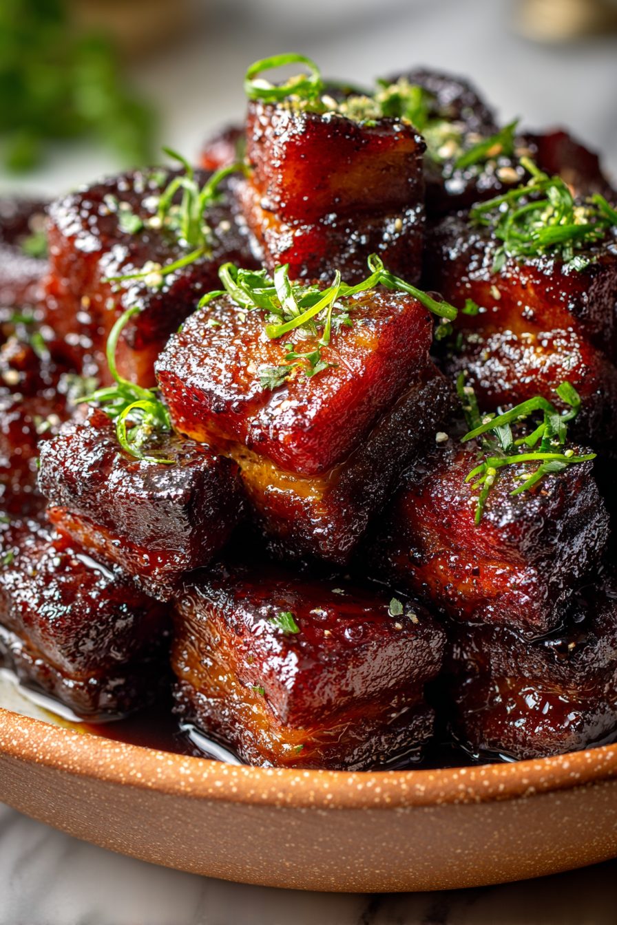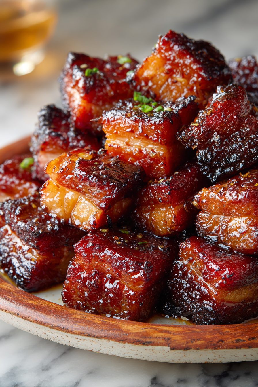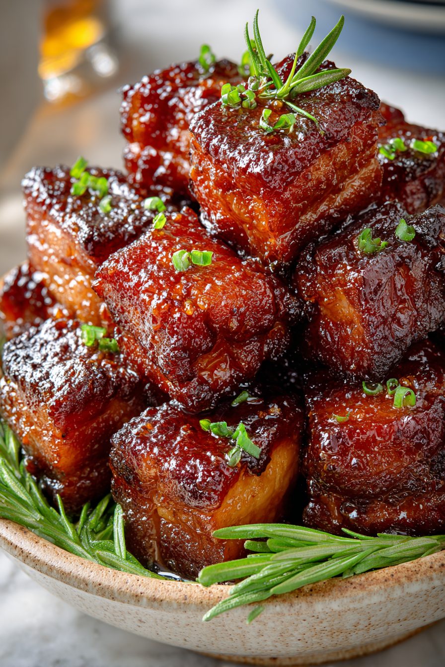 This is pork belly burnt ends soaked in maple and bourbon, sticky and savory with edges that crackle just right. Think deep-brown caramel, boozy warmth, and little cubes of pork that punch way above their weight at a party or lazy Sunday dinner. If you love sweet-and-smoky things that make you lick your fingers, this is for you.