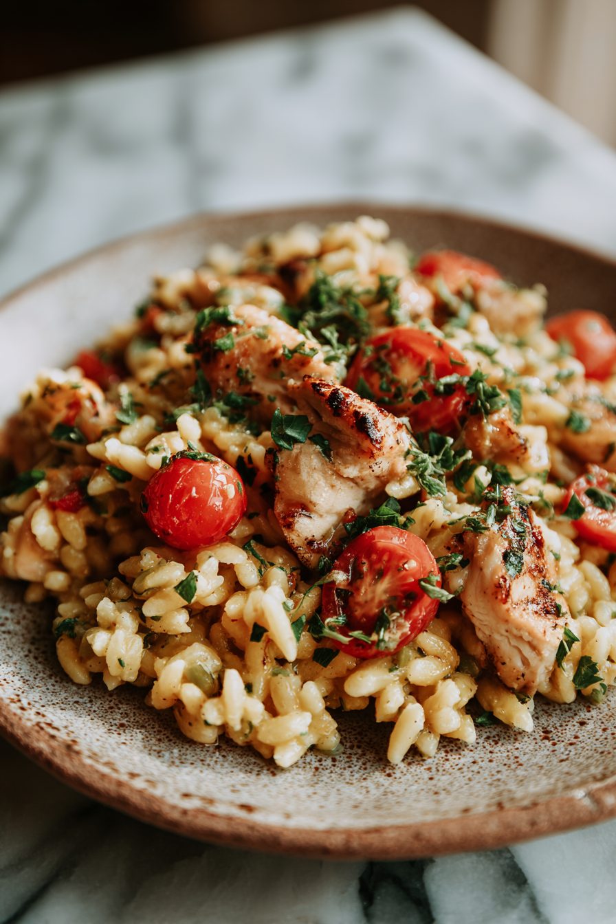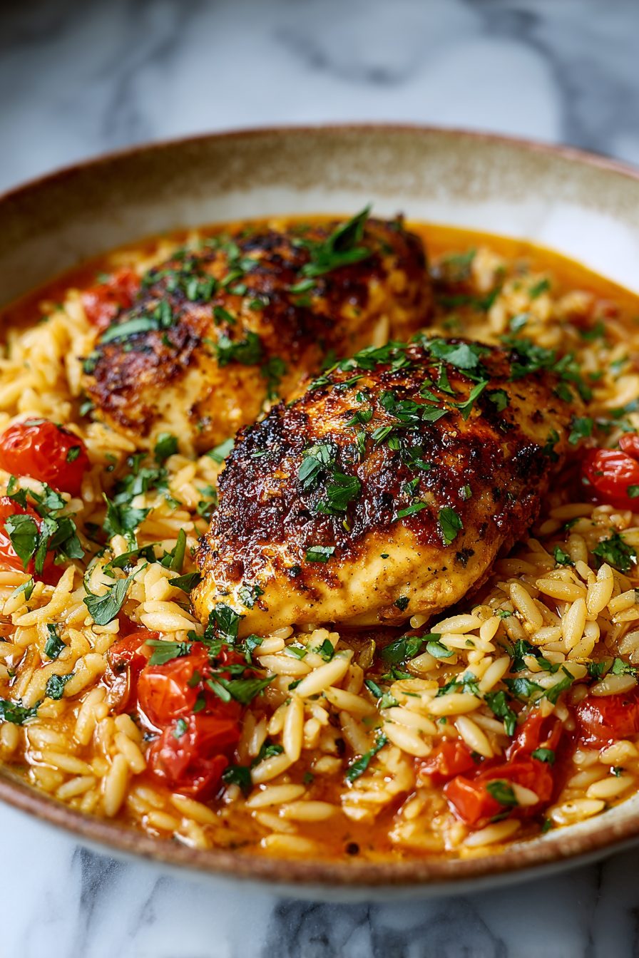 This chicken is saucy, a little dramatic, and somehow always wins dinner — Marry Me Chicken vibes but with risoni (aka orzo) that soaks up the creamy, tangy sauce and makes everything feel like a hug in a bowl. It’s one-pan(ish), ridiculously comforting, and the kind of meal you’ll brag about to your mom and then quietly eat three helpings of while pretending you’re being reasonable.