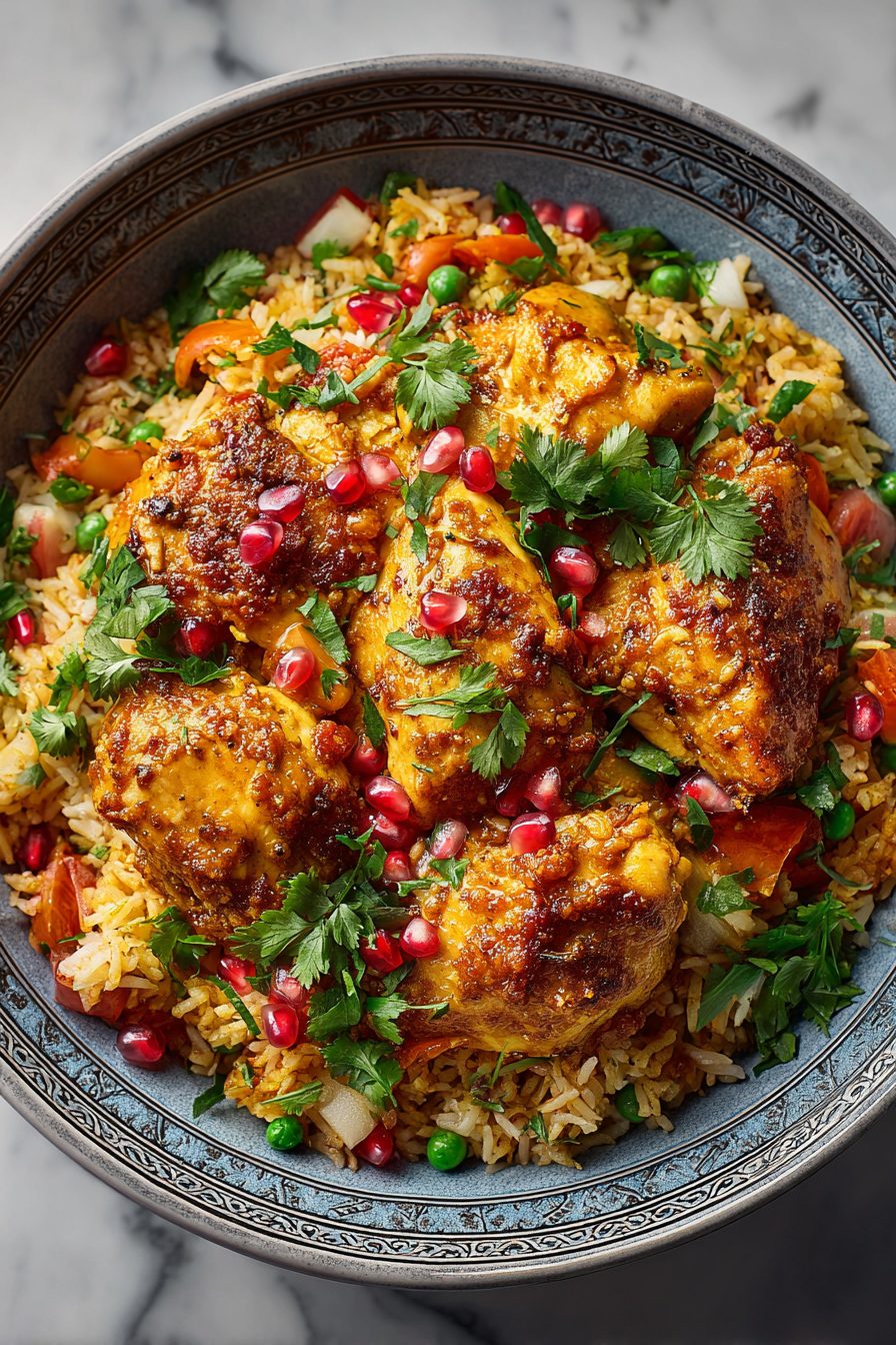 This Moroccan Spiced Chicken with Rice is the cozy, slightly exotic weeknight dinner that somehow feels special without requiring a single crazy ingredient. Tender, spice-rubbed chicken simmers with caramelized onions, warm ras el hanout/turmeric/smoked paprika vibes, and saffron/turmeric-tinted rice that soaks up every bit of sauce — sweet, savory, and comforting all at once. It’s the kind of dish that makes your kitchen smell like a fancy bazaar but comes together with mostly pantry stuff.