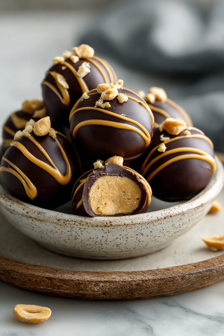 Okay, real talk: making these feels like you’re playing with edible play-dough. I’ve rolled peanut butter balls on the counter, in my hands, on the dog’s blank stare — apparently the dog judges me for the shape. A couple of times I made the dough too dry and it crumbled; a splash of milk or a tiny extra bit of butter fixed it right up. Also, if you dip everything straight from the freezer, the chocolate can crack — let them warm a bit on the counter before the final dunk. Lastly, use a fork or toothpick for dipping so you don’t obliterate the cute round shape with your fingers.
