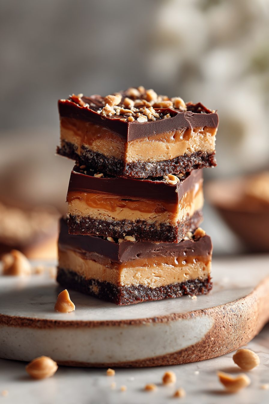 These are the bars I make when I need something chocolatey right now, not in two hours, not after preheating an oven, not after dirtying every bowl in the house—right now. They’re like the soul of a peanut butter cup but chunkier, saltier, and unapologetically homemade. A tender, salty-sweet peanut butter base with a silky chocolate blanket on top. No baking, no drama, just a lined pan, a quick stir, and the fridge doing its thing while you “pretend” to clean the kitchen.