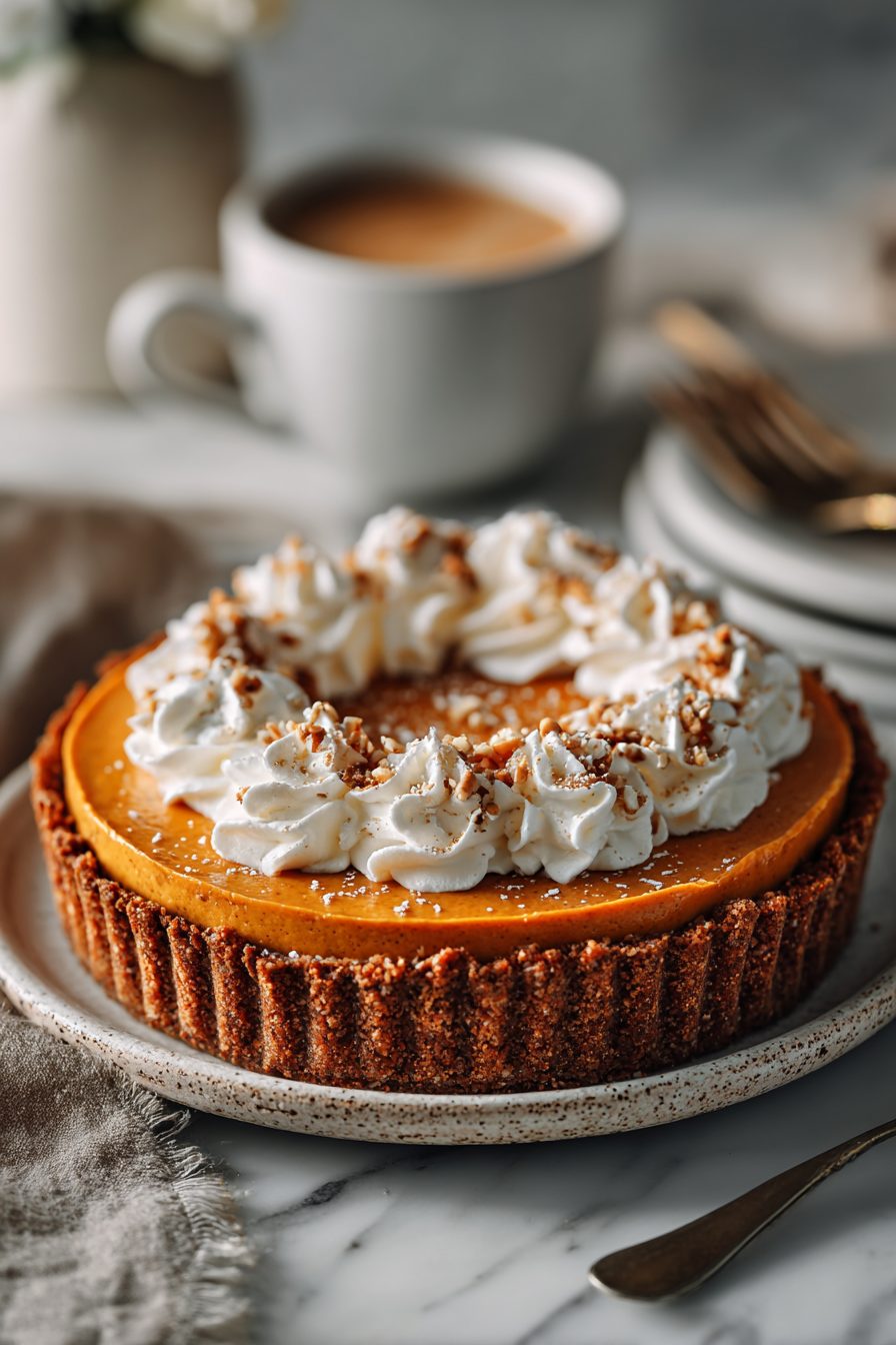 I once tried to substitute instant pudding mix for thickening because I was out of patience and grocery planning. It tasted fine and the kids loved it, but my soul cringed a little — there’s something about the balance of real pumpkin + spices that feels right. Also—chop your nuts for the crust by pulsing a few times in the food processor instead of pulverizing into a paste unless you actually want nut butter. I also discovered that a spatula that’s been warmed under hot water makes smoothing the filling stupidly easy. Little wins.