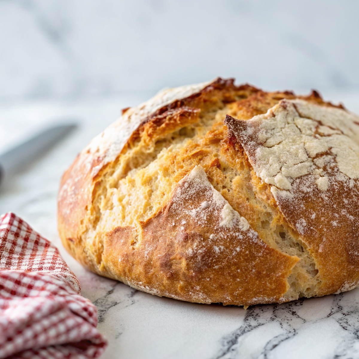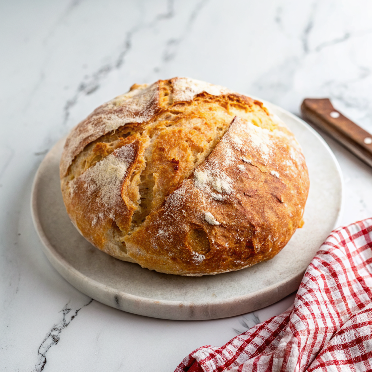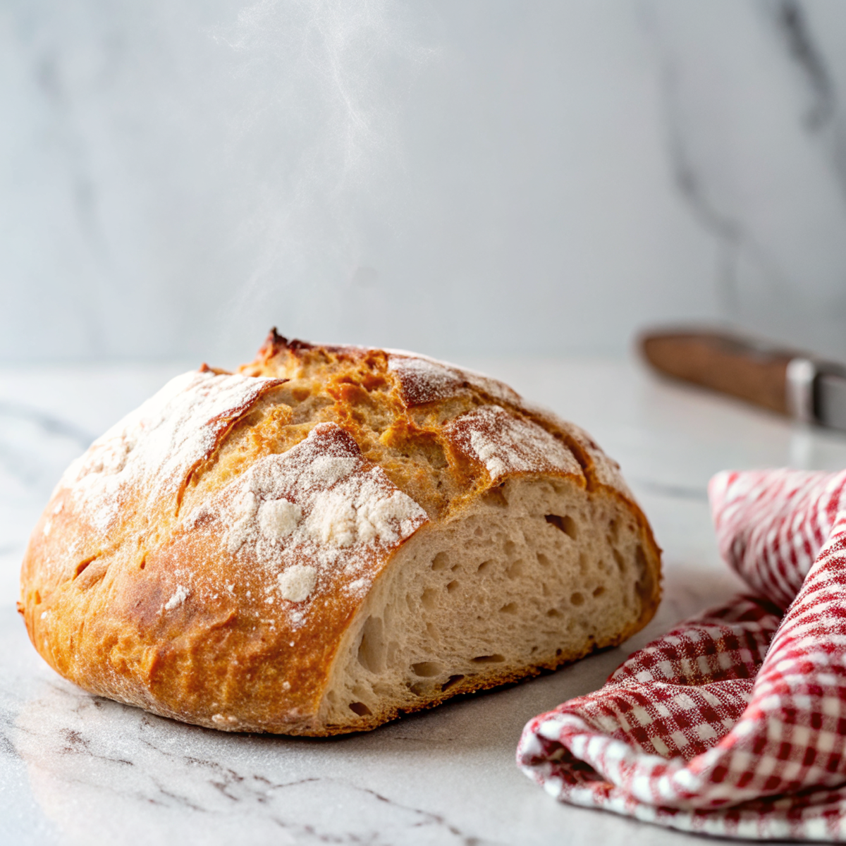This loaf is the kind of bread that makes the house smell like the good kind of magic — crust that snaps, an interior so pillowy it embarrasses store-bought loaves, and zero kneading drama. You mix, let it chill out, and bake it in a hot, lidded pot so the steam does the hard work. It’s simple, a little rustic, and wildly forgiving.