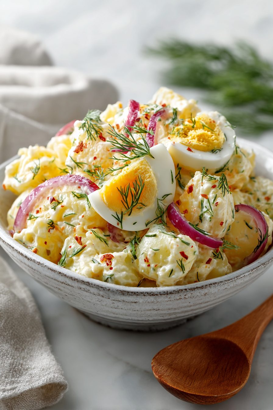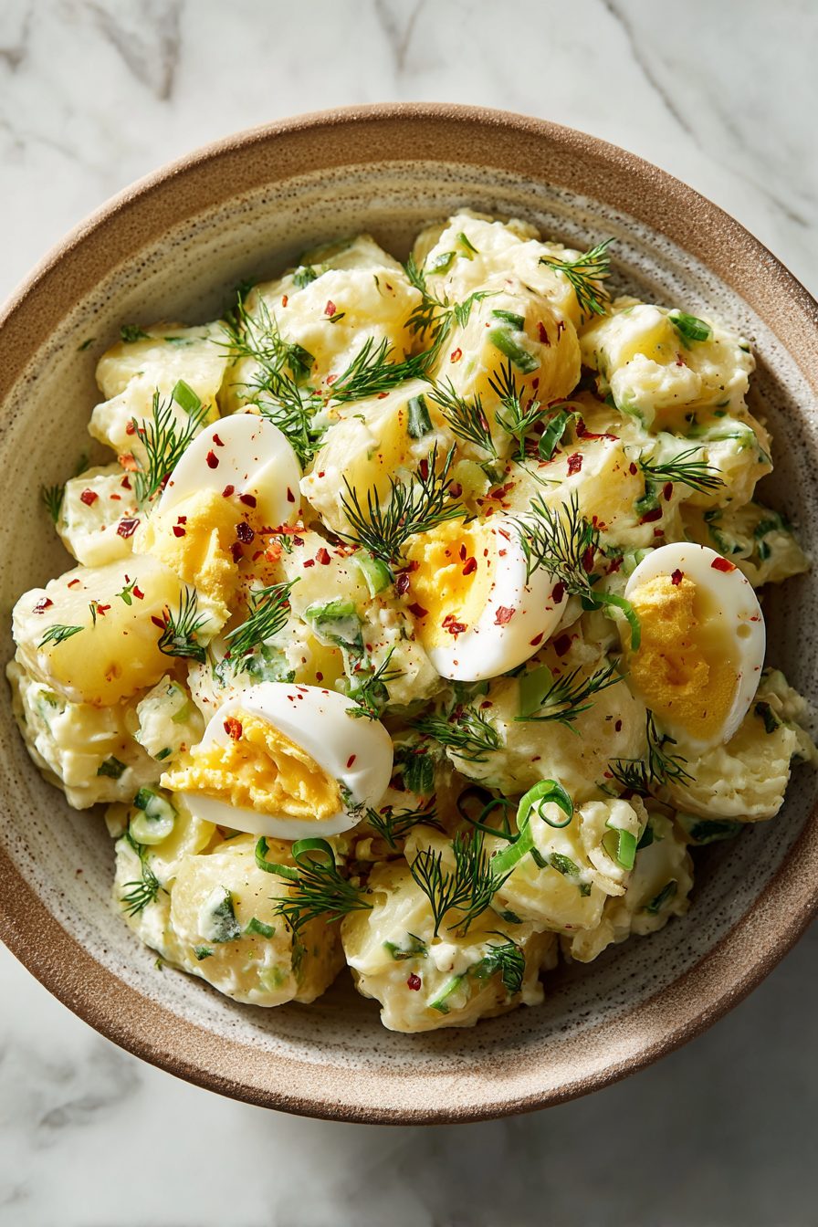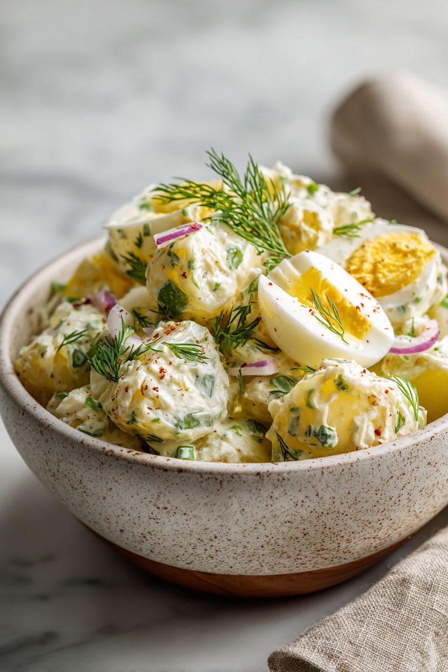 – Use clear, stackable containers for layers (potatoes on bottom, dressing separate) so you can assemble last-minute without mess.