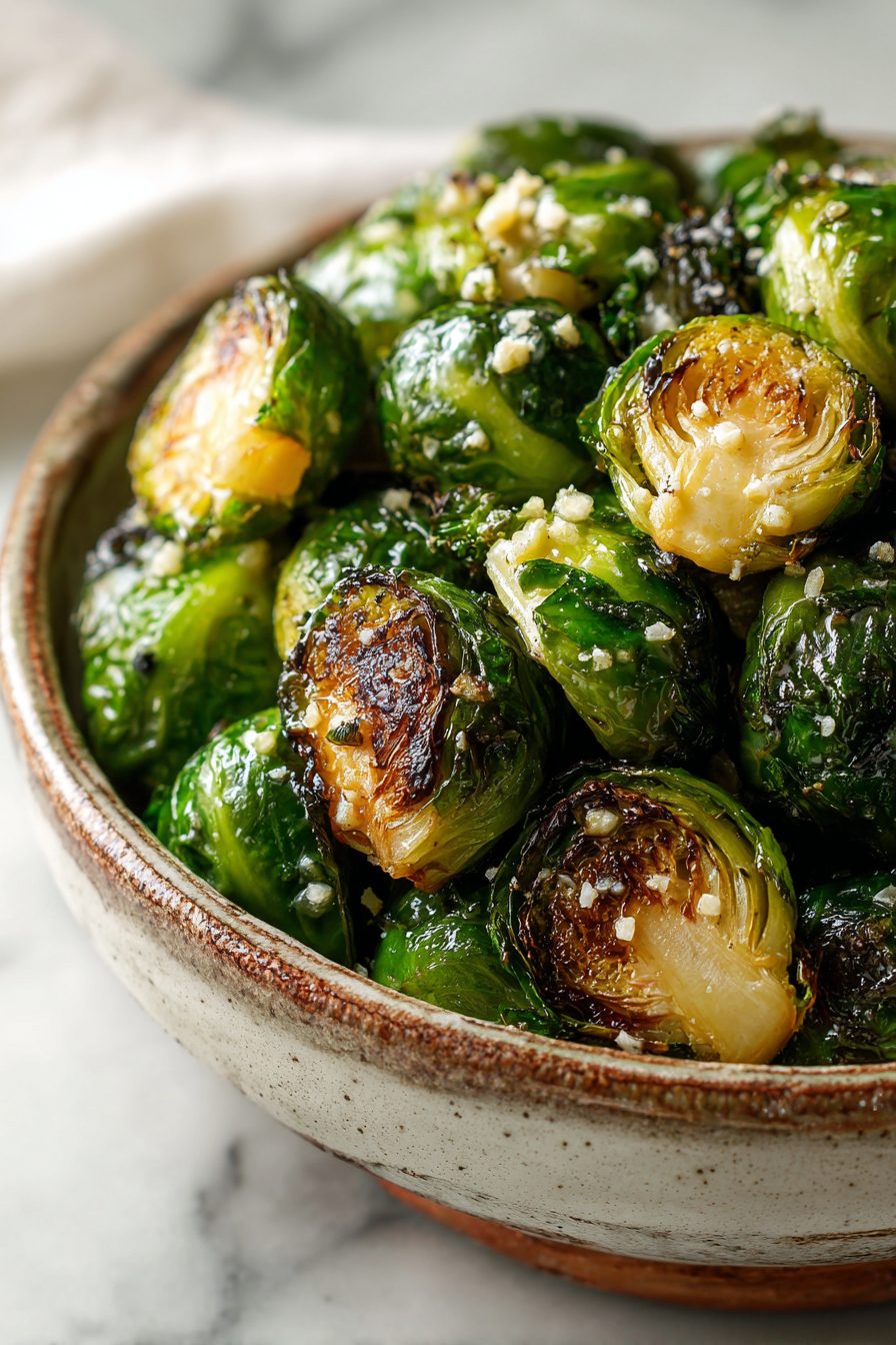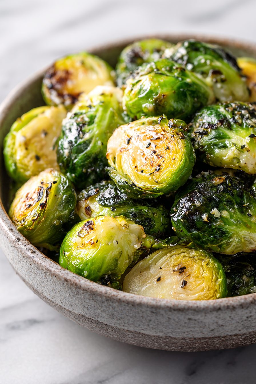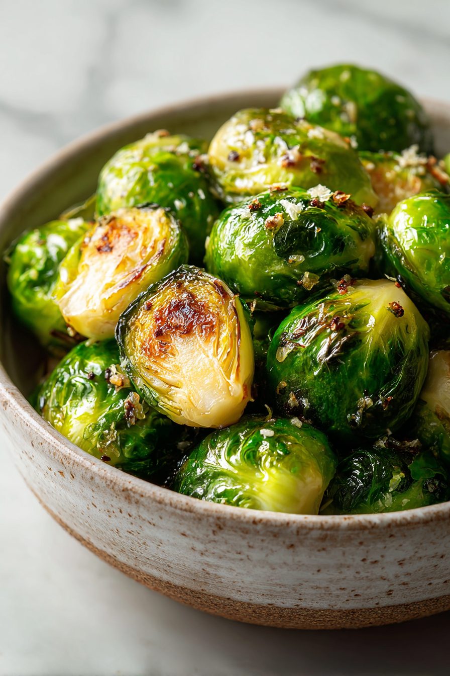 If you’ve only met Brussels sprouts in their sad, steamed form, let me reintroduce you. These are oven–roasted, garlicky, straight-up crispy-edged little flavor bombs. Hot sheet pan, plenty of olive oil, smashed garlic that melts into everything, and a quick squeeze of lemon at the end. They go from “I’ll take a polite bite” to “I’m eating half the pan while standing at the stove in slippers” real fast.