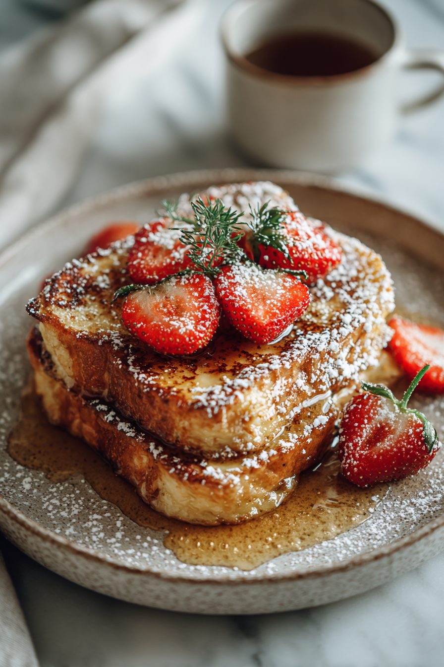 – Custardy center + caramelized edges = breakfast that tastes like dessert without the judgment.