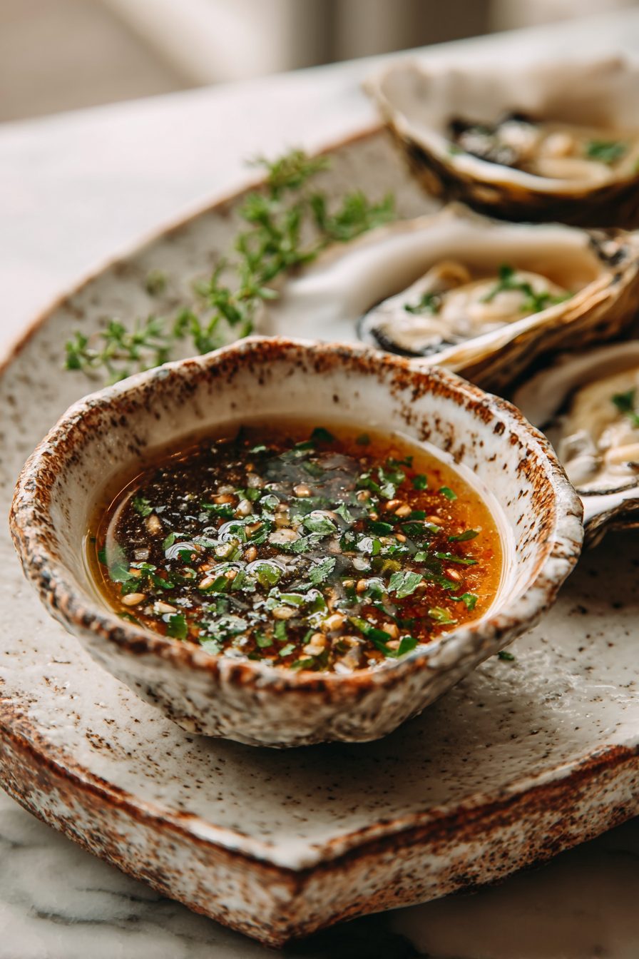 – Serving warm oysters with cold mignonette — keep the sauce chilled; warm sauce flattens the bright flavors.