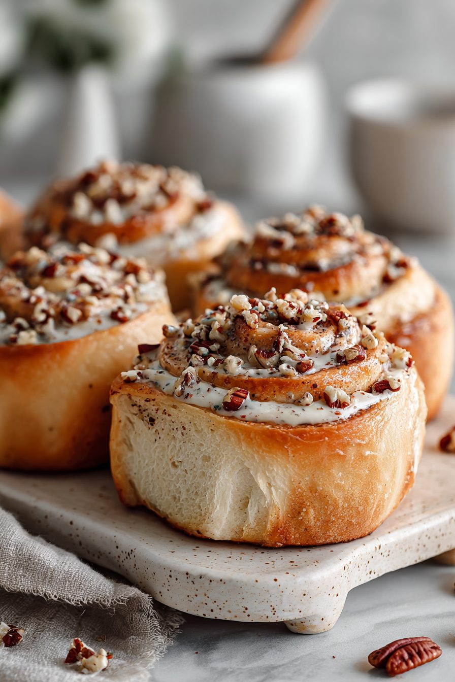 Go wild: swap pecans for walnuts or hazelnuts, use maple syrup in the glaze instead of powdered sugar + milk for a deeper flavor, or try mascarpone for a silkier filling. For dairy-free, use a plant-based cream cheese and vegan butter — texture changes but still good. If you need less sugar, cut the glaze sugar by a third and add a pinch of salt to keep it interesting.