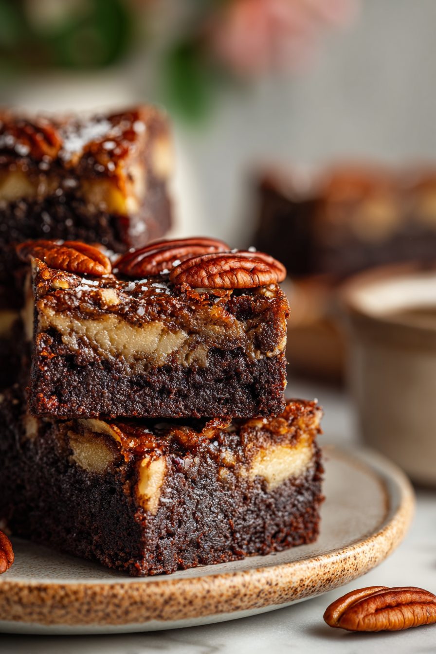 I always try to make the brownie layer as fudgy as possible, which means less flour, more butter, and fewer expectations. One time I mixed the pecan filling directly into the brownie batter because I was distracted by a YouTube video and the cat doing yoga; it turned out deliciously marbled, so don’t be afraid to break the rules if you’re bored. Also, pecans toast beautifully in a pan for like two minutes — stay by the stove or you’ll burn them and mourn quietly.