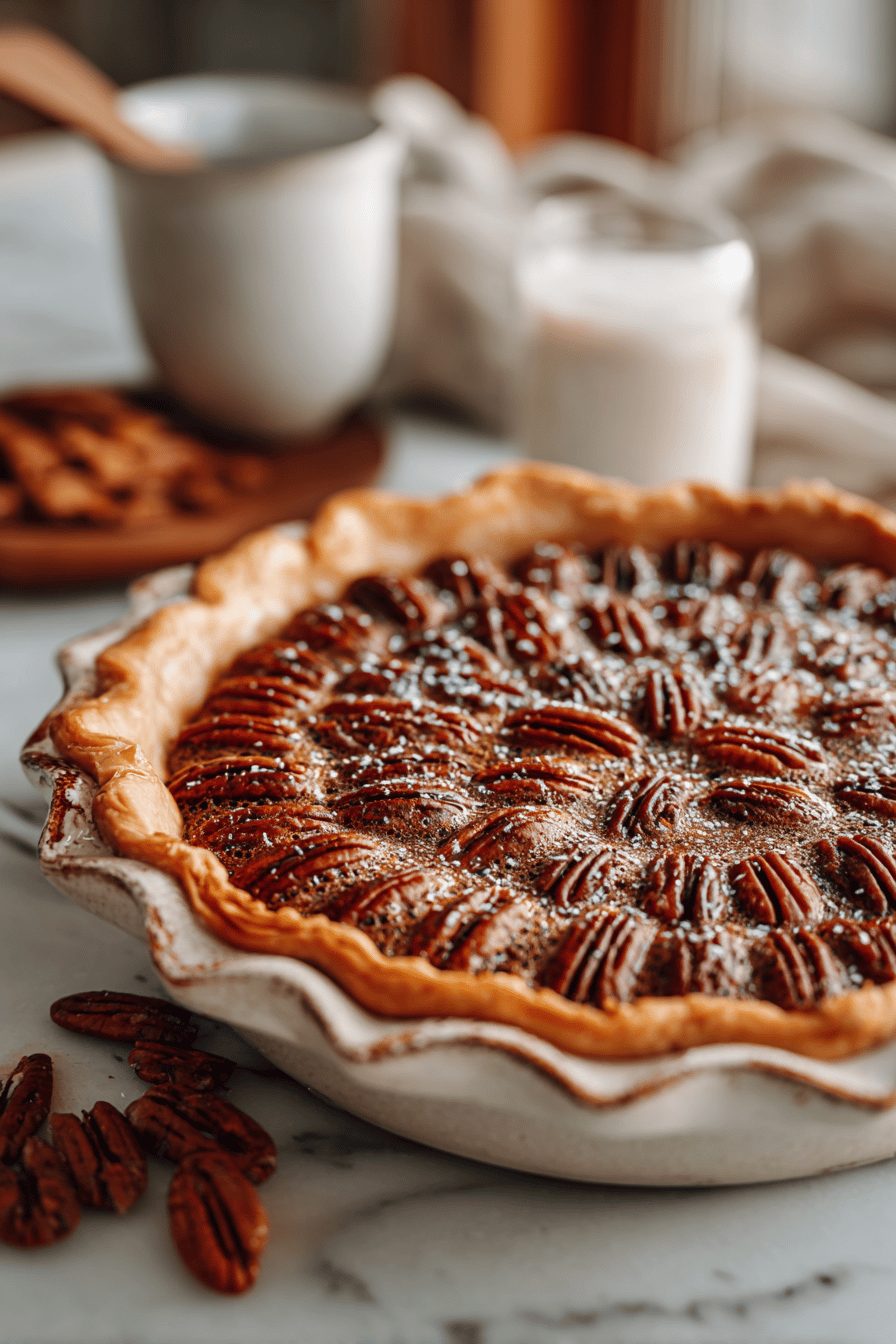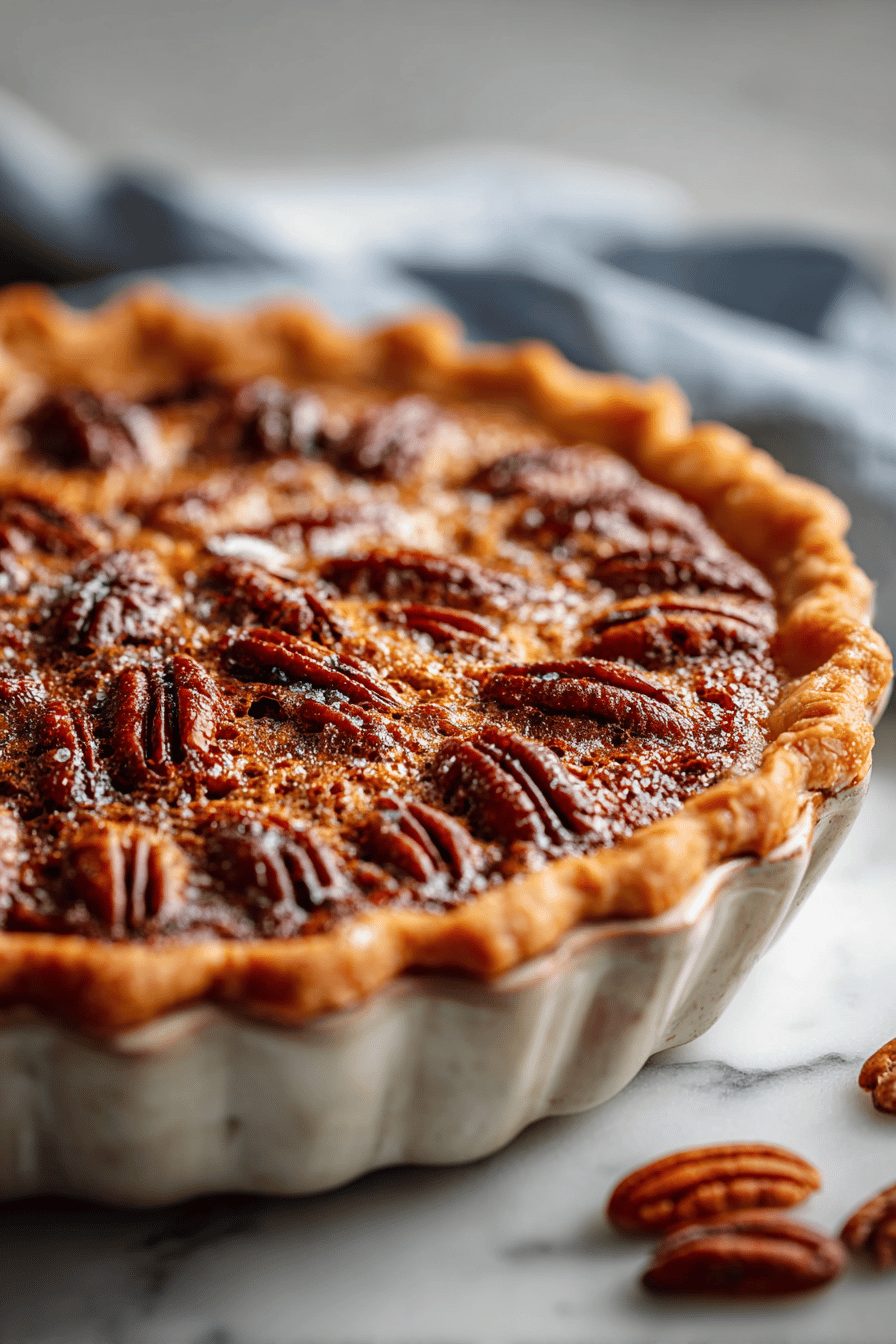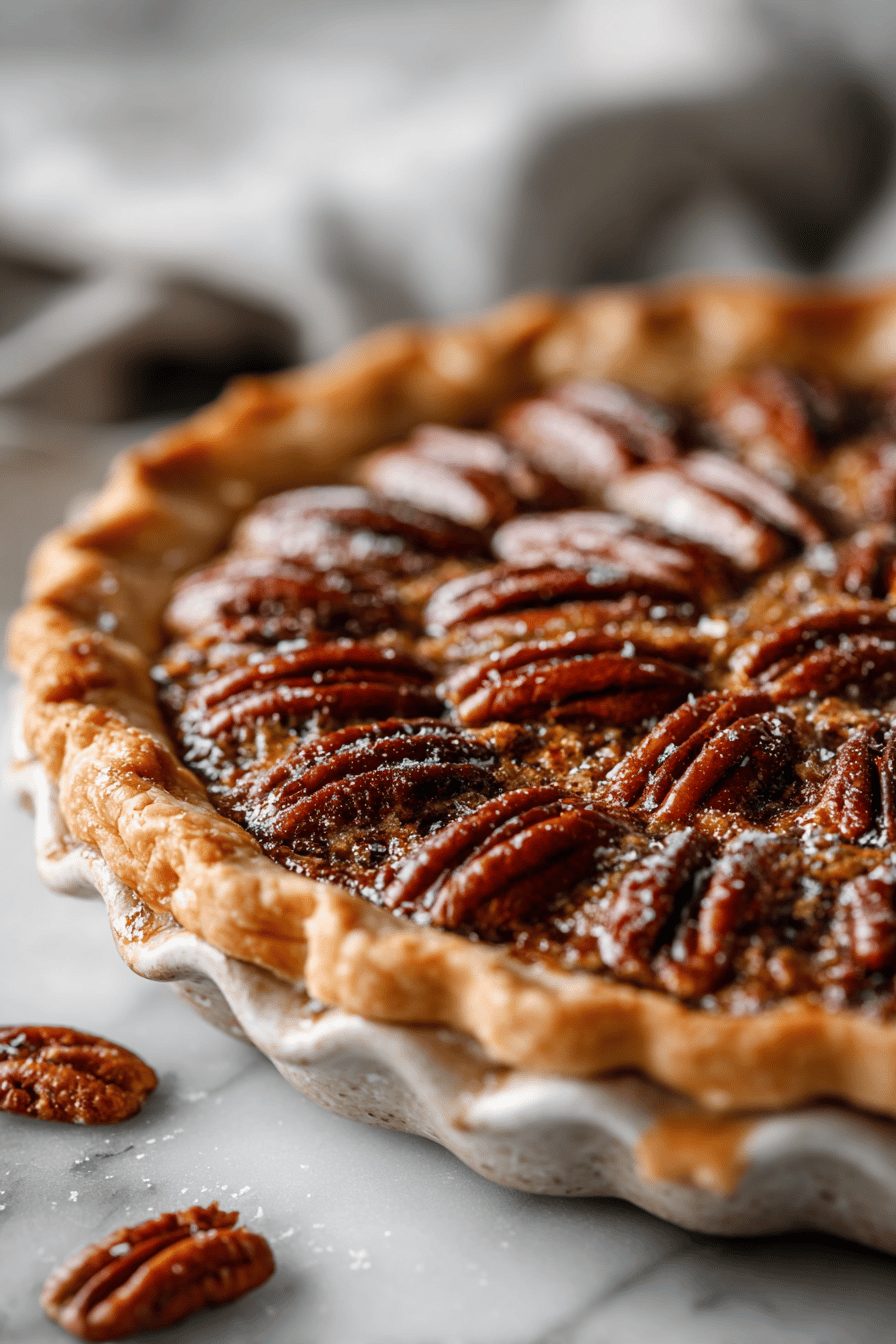 This pie is one of those recipes that teaches you to relax. The filling wants to bubble and jiggle a bit — don’t panic when it’s not rock-solid right out of the oven. Toasting the pecans first makes a world of difference; I once skipped it because I was late for a dinner and the pie tasted flat. Also, I tried swapping half the corn syrup for maple syrup on a whim during a sugar shortage and it was surprisingly good — a little woodsy, less slick. Blind baking the crust? Helpful if you’re paranoid about sogginess, but I usually skip it and just keep an eye on the bottom color. If you accidentally overbrown the edges, cover them with foil halfway through the bake next time.