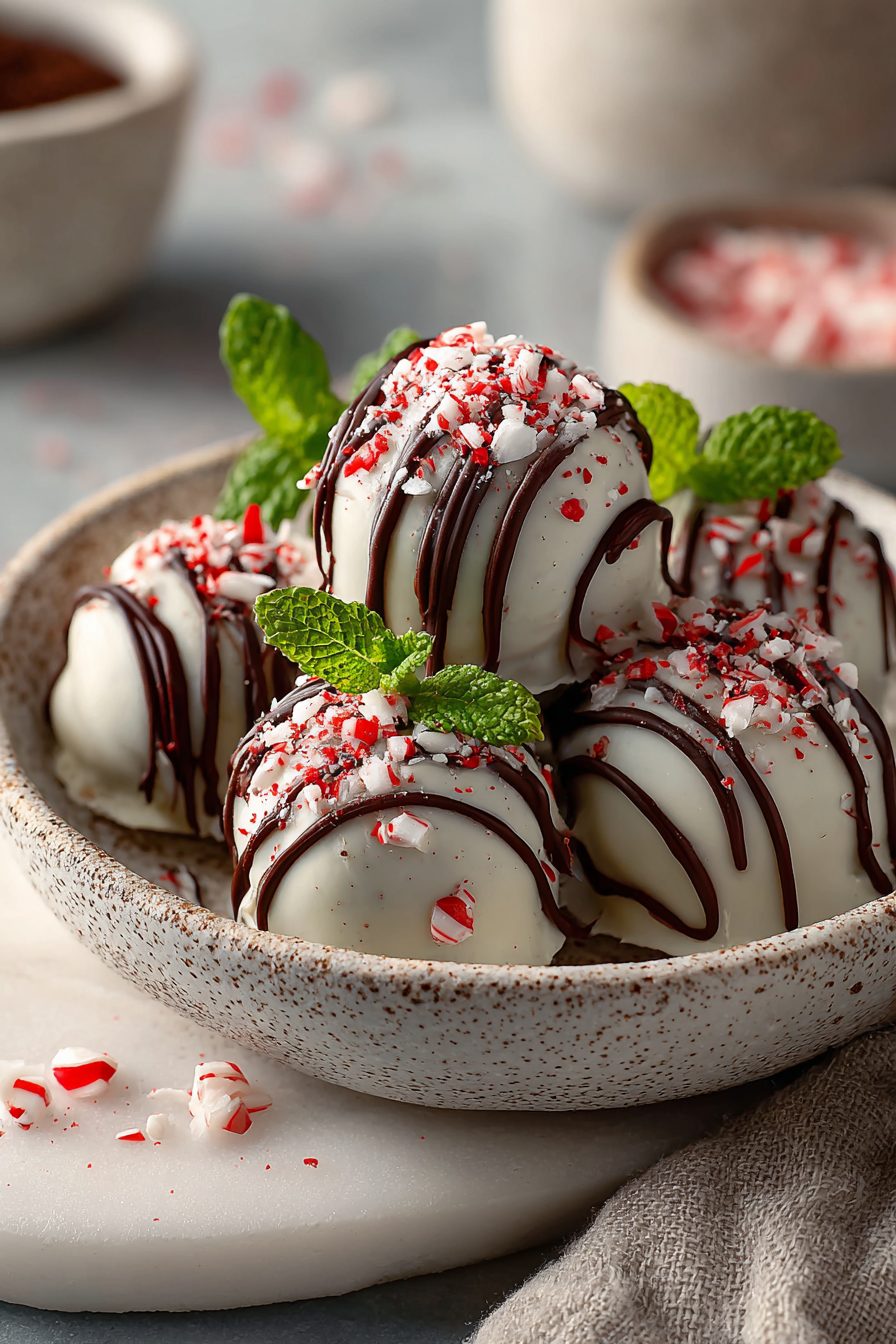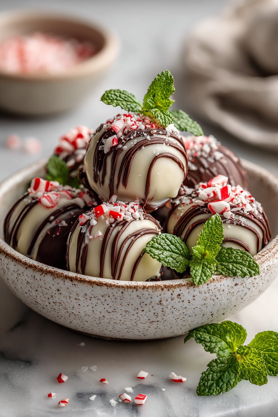 These peppermint brownie truffles are the kind of dessert that shows up at the weird hours of my life — late-night cravings, post-dinner peace treaties, and the holidays when everyone pretends to be fancy. Dense, fudgy brownie crumbles mixed with a creamy binder, rolled into little chocolate-coated bombs, and finished with crushed candy cane for that sharp, minty kick. They’re small, ridiculous, and dangerously easy to polish off by the sleeveful, which is exactly why you should make them.
