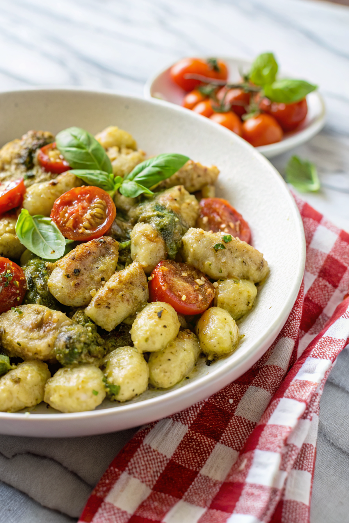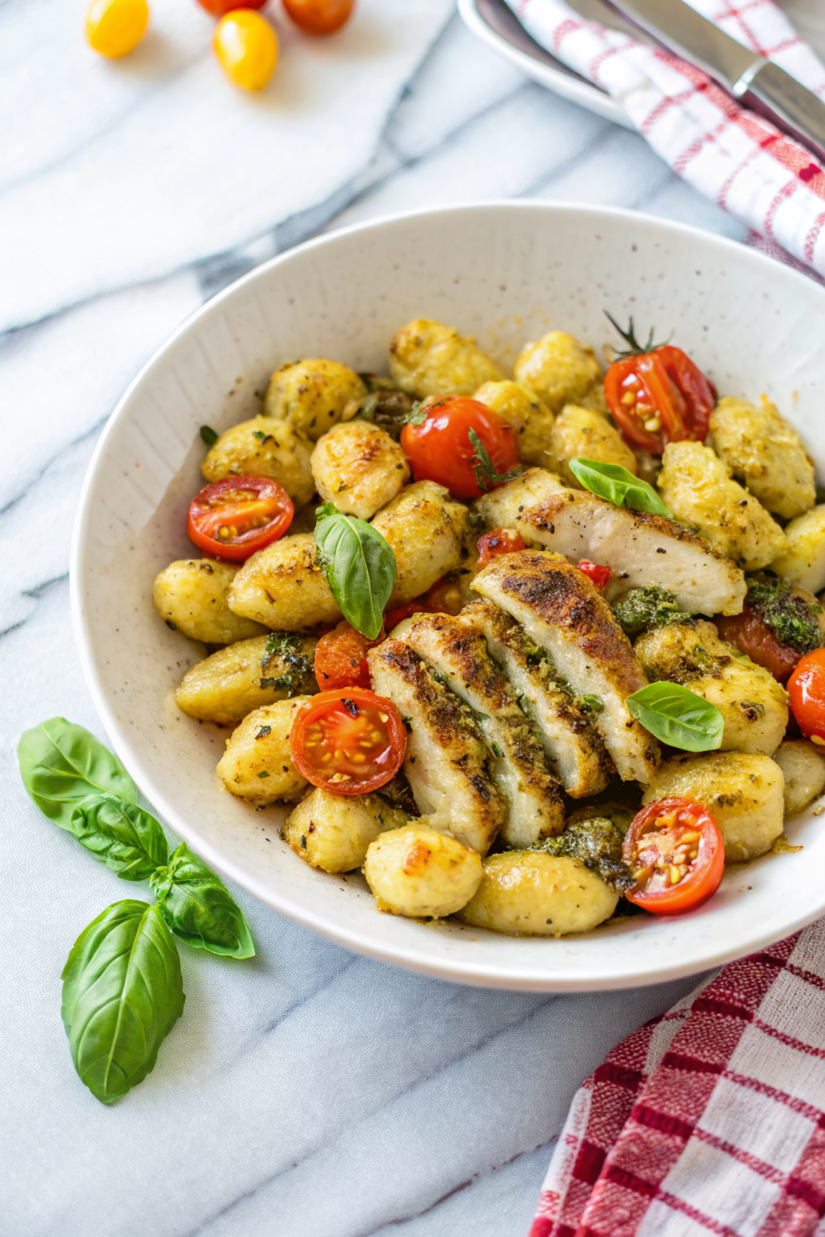 I love the tiny chaos of this recipe: boiling gnocchi while searing chicken and trying to keep the toddler from using the basil as confetti. Note that pesto can seize if it gets too hot — that moment when you toss in cream and it looks like curdled green sadness. Stir like you love it, add a splash of pasta water, and it comes right back to life. Also, I once tried this with kale pesto because I was out of basil and it actually made me feel like I was eating salad and carbs at the same time — a win.