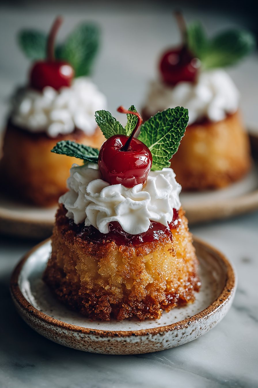 This little cake is basically pineapple upside–down energy in bite form — sweet caramelized pineapple, buttery cake smeared with brown–sugar glaze, all shrunk down into handheld, slightly messy morsels that look fancy but are stupidly easy. It’s the kind of thing you make when you want dessert that feels celebratory but doesn’t require a rolling pin or a big oven ceremony.