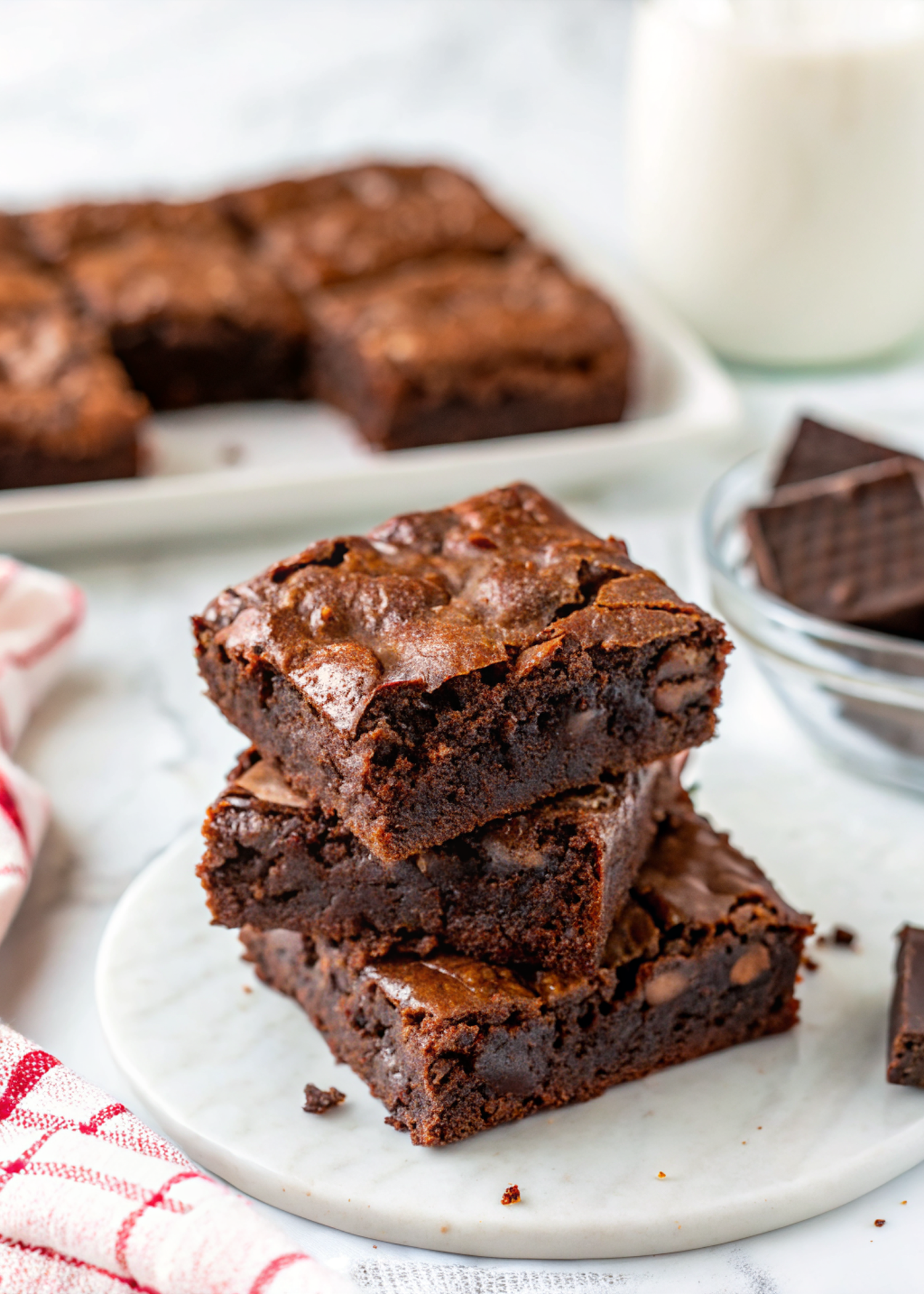 Keep leftovers in an airtight container at room temp for a couple days, or freeze slices wrapped tightly for up to 3 months. Cold brownies are actually excellent for breakfast (no judgment here) — they firm up and become slightly fudgier. Warm them for 10–15 seconds in the microwave if you want that just-baked feeling.