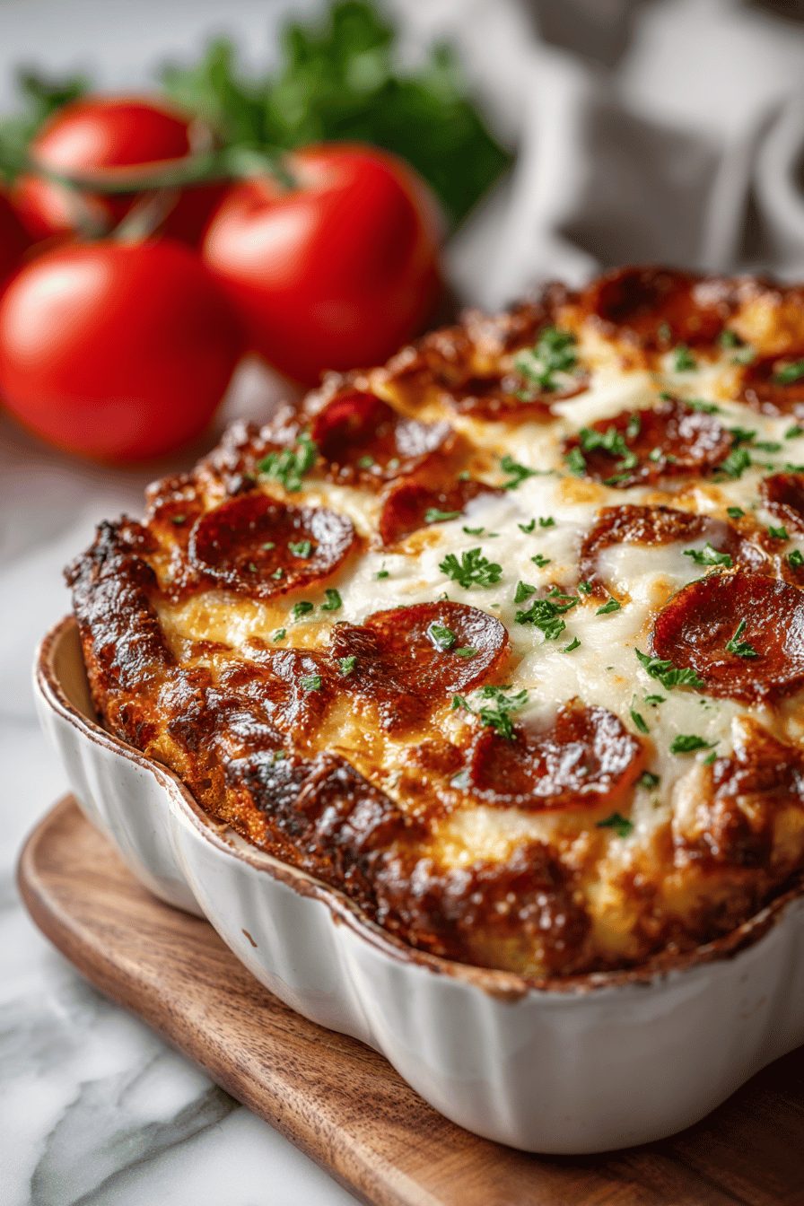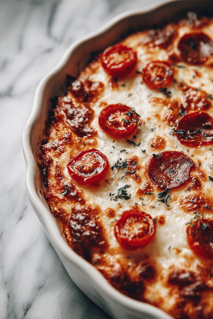 This recipe has that “throw-it-together” energy I live for. I once forgot the pizza pepperoni at the store and used sliced salami — surprise winner. Another time I accidentally grabbed herbed cream cheese instead of plain and the casserole sang with extra oregano vibes. Expect bubbly edges, a little crunchy top, and crumbs all over the counter because that’s how the best dinners happen here.