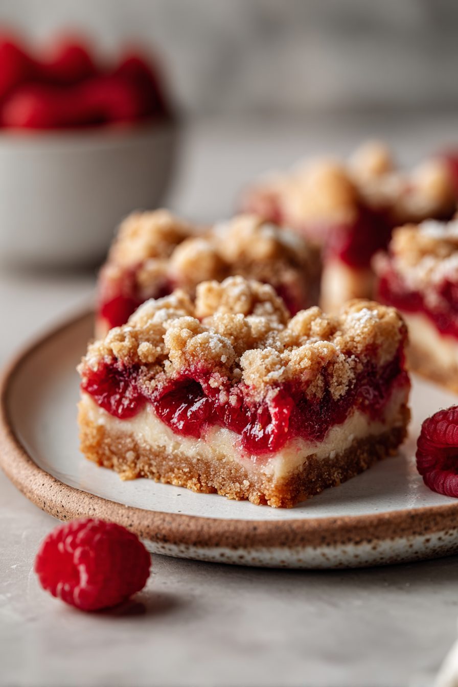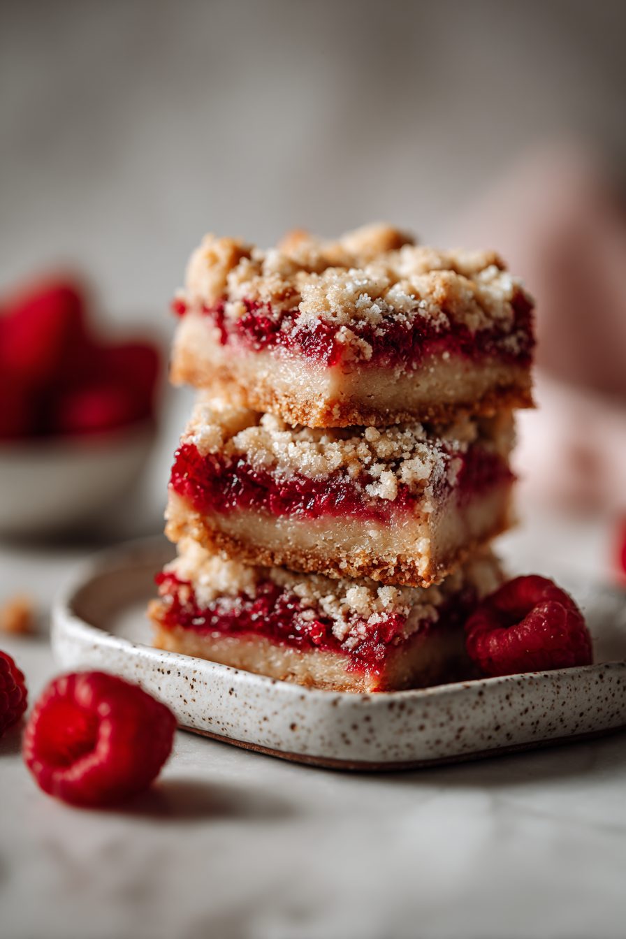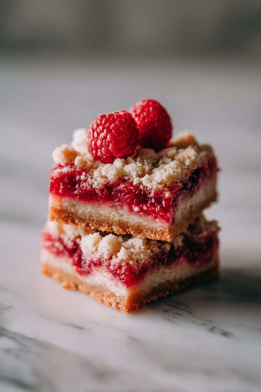 Buttery, golden crumb bars layered with bright raspberry filling and a hint of lemon. Perfect for picnics, bake sales, or afternoon coffee.