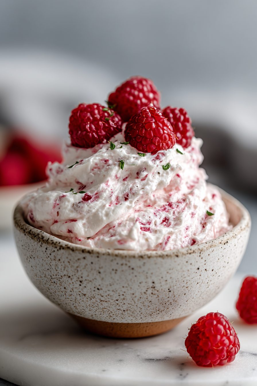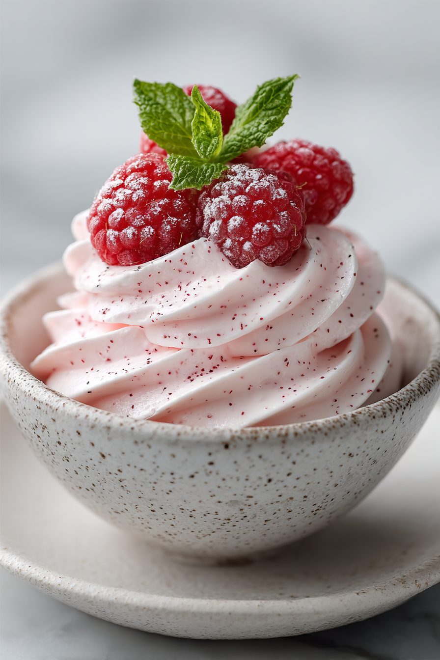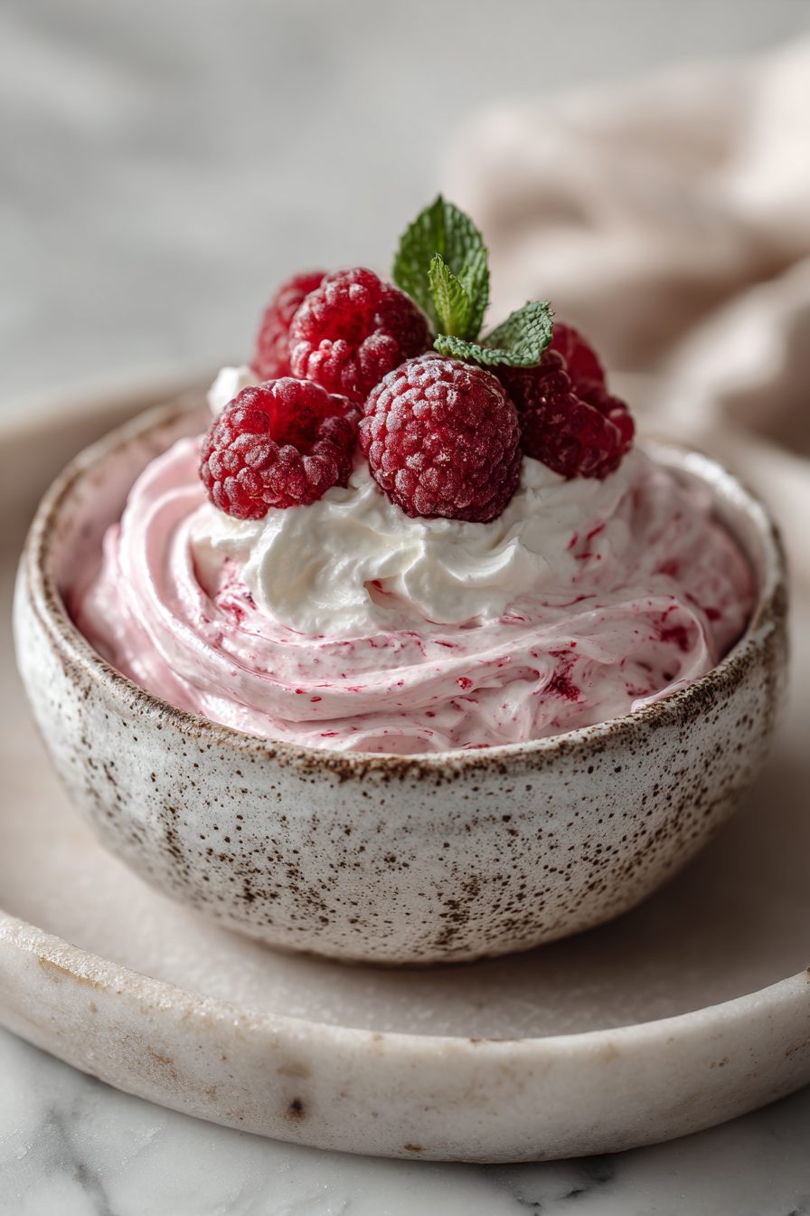 I swear by a cold metal bowl for whipping—like, toss it in the freezer for a few minutes while you rinse the berries. The day I didn’t, I blinked and the cream slid back into soup territory, which is humbling. Also, if your raspberries are a little tart, steal a spoon of jam and ripple it through. It makes this gorgeous pink marbling that looks fancy without trying. One time I swapped in coconut cream because we were out of dairy and it totally worked, but it likes to be chilled and doesn’t love rough stirring—treat it like a diva and it rewards you. Oh, and don’t fully crush every berry; you want that mix of juicy swirls and little fresh bursts.