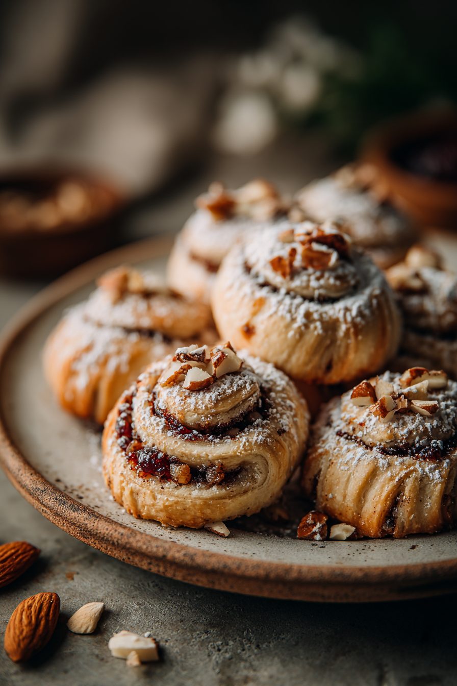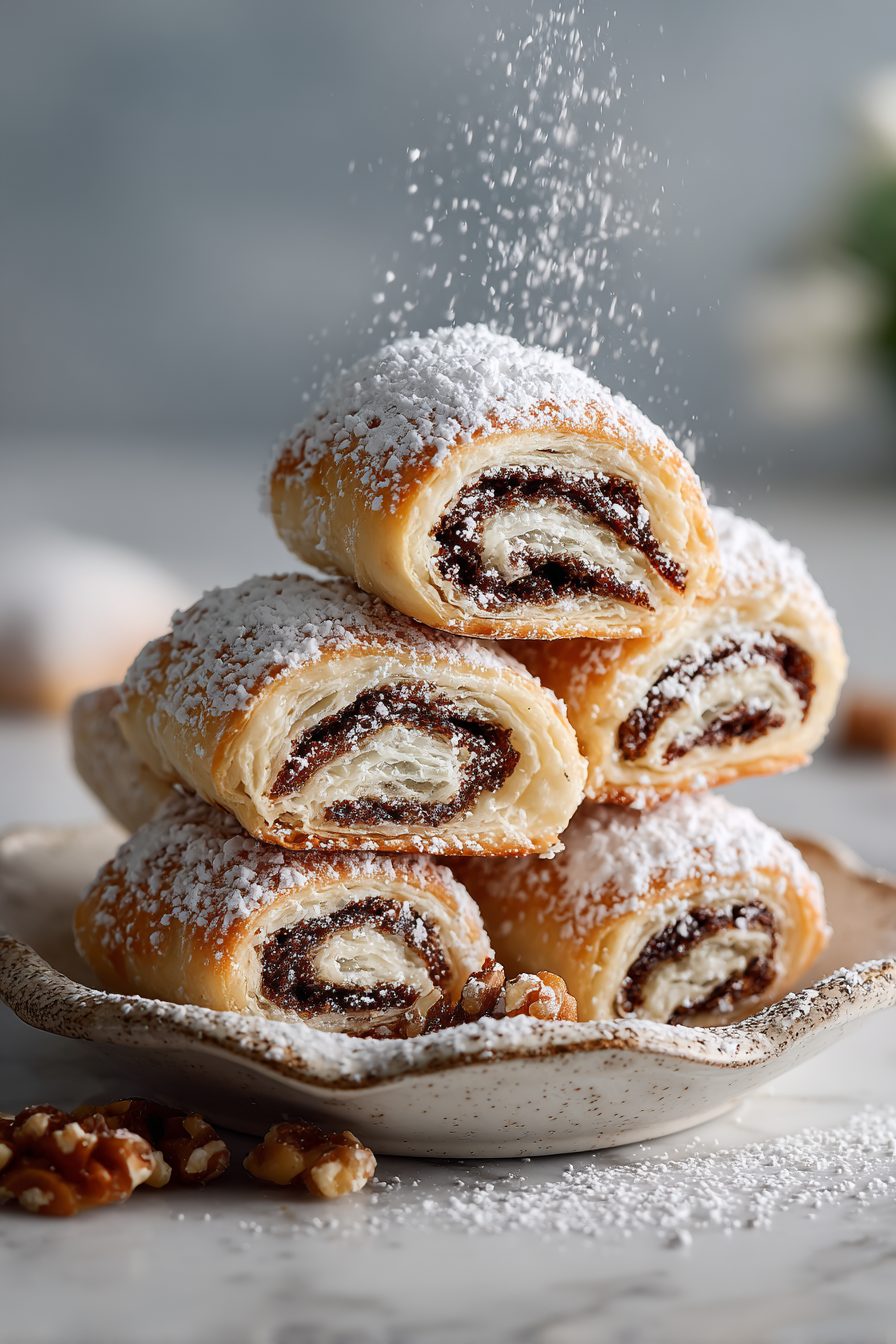 Use apricot jam + toasted walnuts for a classic combo, or swap jam for Nutella or a chocolate-hazelnut spread for grown-up chocolate crescents. If you don’t have cream cheese, try a stiffer pastry butter (less forgiving but doable). For nut-free, use toasted sunflower seeds or omit nuts and add more chocolate or spice. Honey will change texture in the filling, so use sparingly or thicken the filling slightly before spreading.