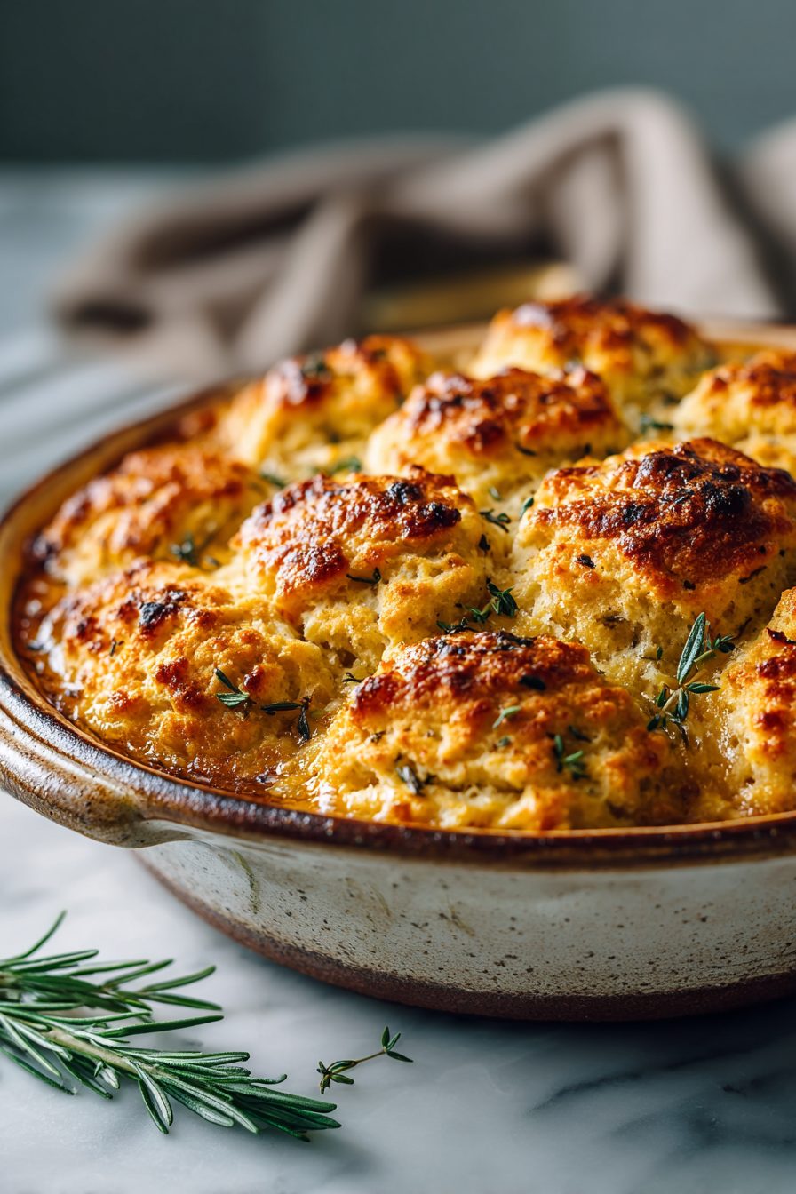 – Add mushrooms, spinach, or leeks for extra veg; stronger herbs (rosemary, thyme) pair beautifully with the buttery biscuits.