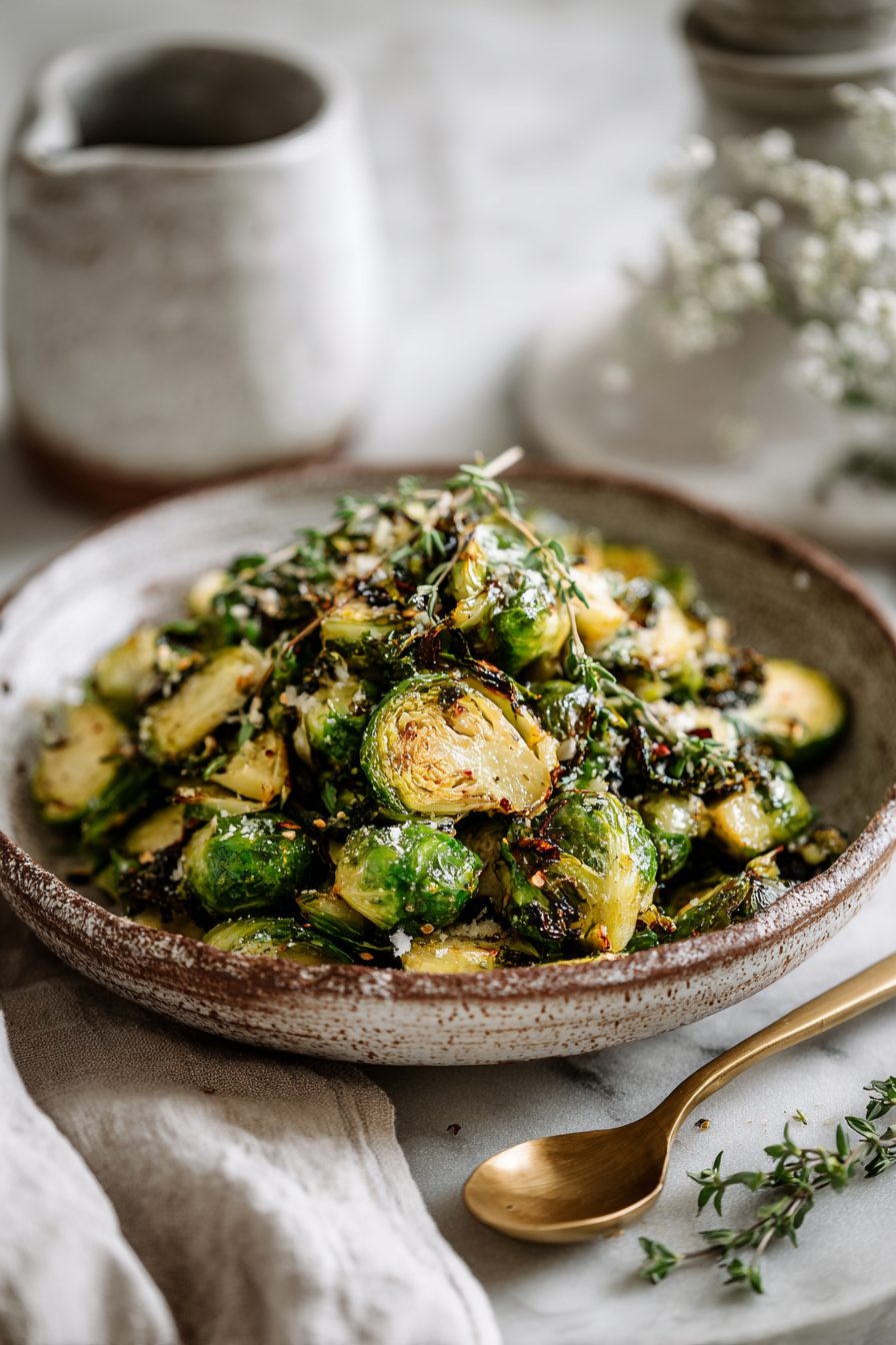 These are the Brussels sprouts that made my skeptical, bacon-obsessed husband stop mid-bite and say, “Wait—why are these so good?” Think crispy, craggly edges and tender middles, all smashed flat and roasted until they flirt with being chips, then glossed in garlicky oil, lemon, and a snowy blizzard of Parmesan. It’s a side dish with main-character energy, the kind that magically disappears off the sheet pan while you’re “just tasting one more.”